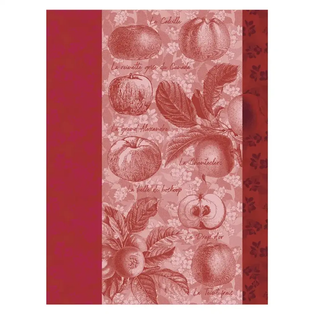 A romantic tea towel of an orchard full of apple trees. A bucolic moment and flavors of yesteryear: an extract of the oldest and most natural varieties. Since 1888, Le Jacquard Francais has created a collection of table linens without equal. Weavers, warp beamers, knotters and other specialists work in harmony to perfect the weaves and colors of all of their linens. Classic Le Jacquard Francais linens are characterized by using framed woven patterns to create timeless tablecloths, napkins, placemats and table runners that will beautify your tables for many years. Le Jacquard Francais coated tablecloths are made of 100% cotton weave with long fibers. They are waterproof and stain-resistant thanks to a patented and exclusive acrylic coating that withstands washing. Newly introduced, LJF by Le Jacquard Francais is a more casual line of contemporary looks that mixes colors and patterns and plays with graphics. Practical and easy to use, these tablecloths will stand up to frequent use in the kitchen or patio.