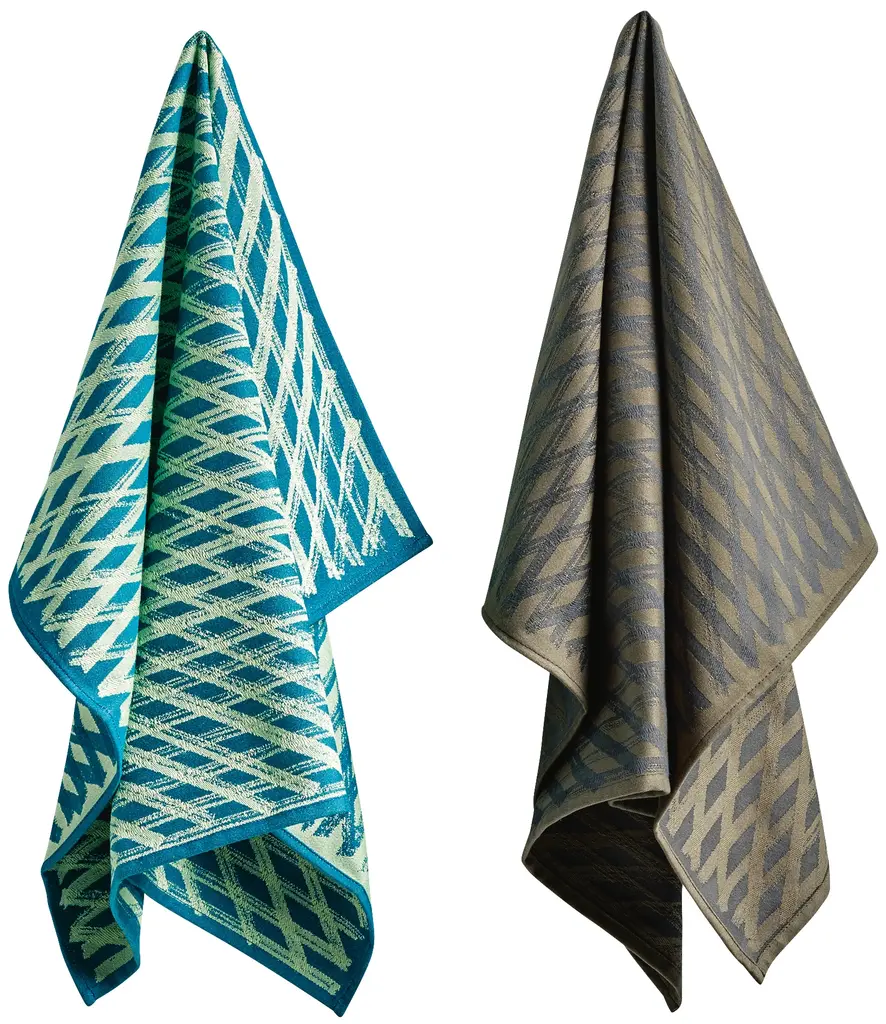 Colorful tea towels woven in a cotton blend created by the Dutch design duo Scholten & Baijings. Tea Towels come in sets of two with assorted designs and color schemes to choose from.