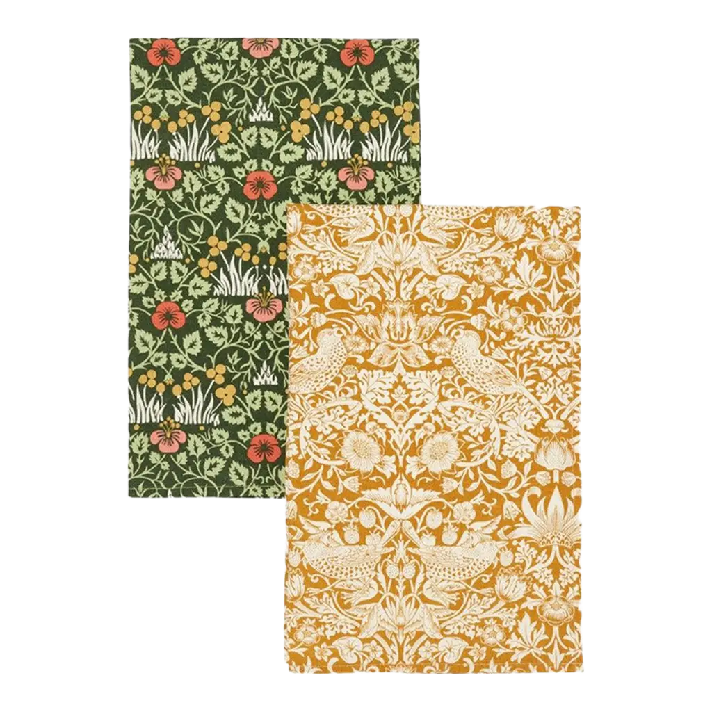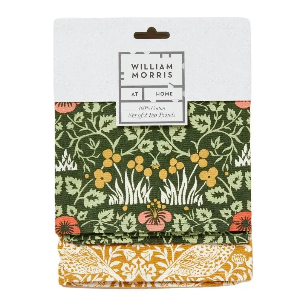 Add a little joy to the everyday with this set of two, useful and beautiful cotton tea towels. Featuring two William Morris prints, Strawberry Thief and Eyebright this set makes a perfect gift for the home lover and fan of the artist’s iconic designs. Crafted from durable 100% printed cotton featuring two William Morris prints. Tea towels measure 65 x 44.5cm. Fitted with a handy hanging loop in one corner. Machine washable on a low heat at 30 degrees. Part of the William Morris At Home lifestyle collection of coordinating designs that fit seamlessly into the home. Designed in England honouring the beliefs and vision of William Morris to make practical, useful and beautiful products to use and love. Includes: Set of 2 Tea Towels Ingredients: 100% Cotton