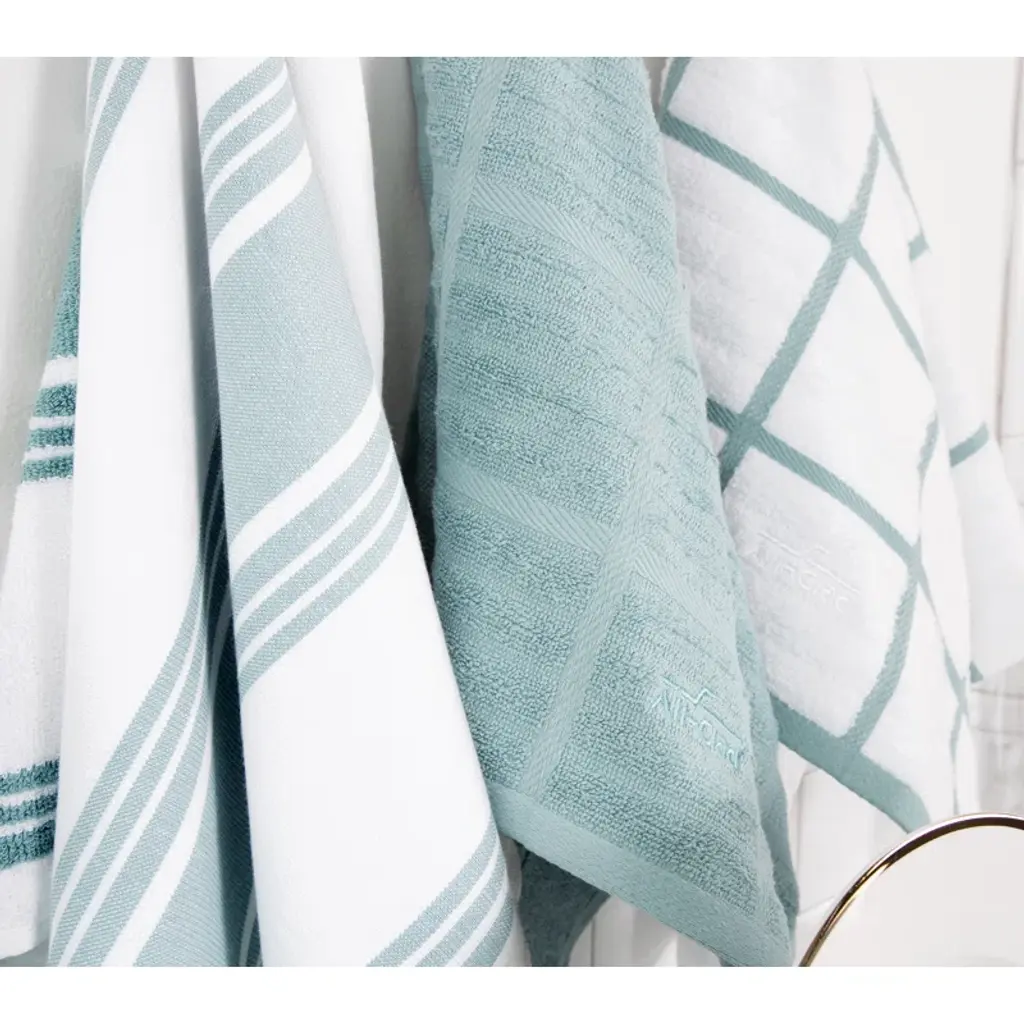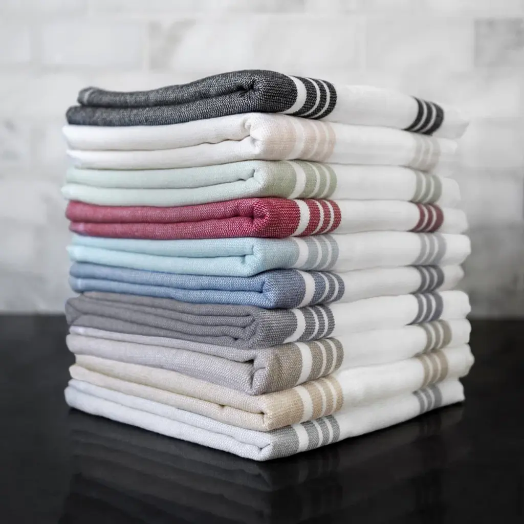 The first time you wash these towels, something magical happens the smooth basketweave puckers into a waffle texture that offers more surface area per square inch, drinking in water as no flat-woven towel can. Loomed from yarn-dyed organic cotton crossed with white, they have soft colors that endure through hard work and frequent laundering. There is a slight color variation with each dye lot, but rest assured it is GOTS-certified finishing, so there’s no change in product performance.