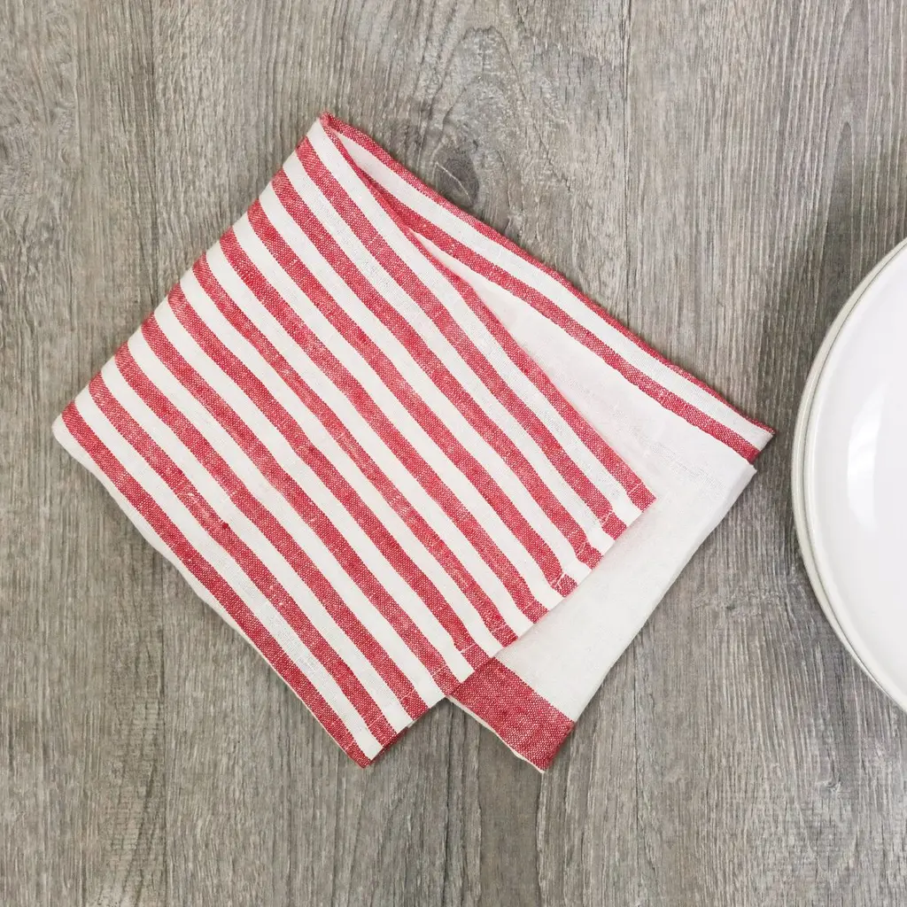 Enhance your table setting with the timeless charm of our Brittany Linen towels. Crafted to bring classic French country elegance to your dining experience, this set of four napkins features centered, varied stripes against a natural linen palette for an effortless tablescape. Mix and match these stripes to create your perfect place setting. Bon Appétit!