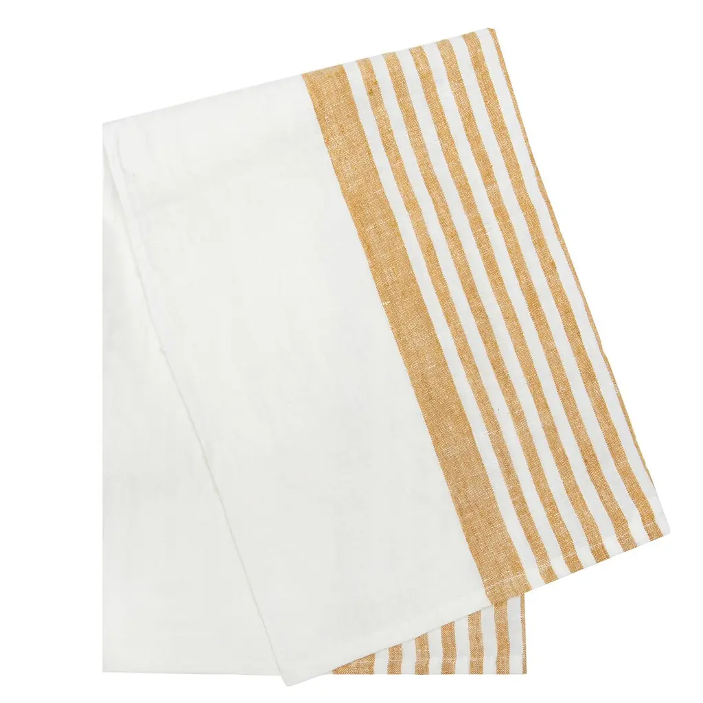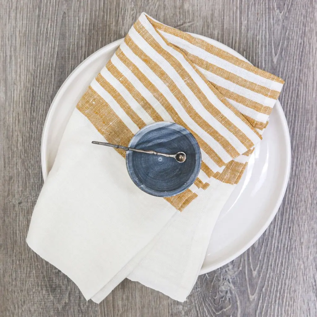 Enhance your table setting with the timeless charm of our Brittany Linen towels. Crafted to bring classic French country elegance to your dining experience, this set of four napkins features centered, varied stripes against a natural linen palette for an effortless tablescape. Mix and match these stripes to create your perfect place setting. Bon Appétit!
