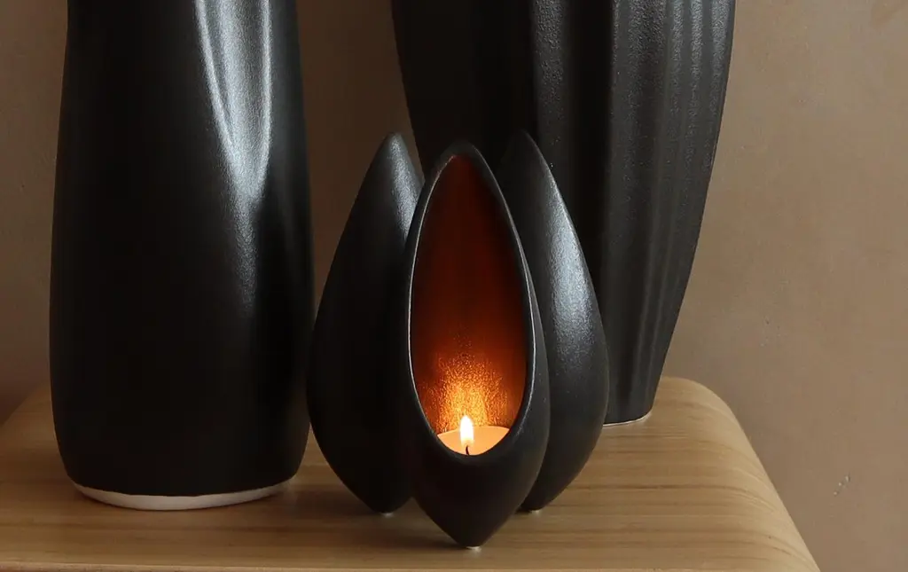 Introducing our stunning 3-part Seed Pod Tealight Holder. Each pod is hand-cast, kiln-fired and hand-painted by skilled artisans in New Zealand.The elegant seed pod design adds not just visual appeal but also a stable form, allowing for a soft warm glow to be enjoyed from any side of the table. This tealight holder is not just a functional piece but a work of art that will add a touch of elegance to any room.Add this unique piece to your home decor collection today and experience the warmth and beauty it brings.Place a lit tea-light candle in each of the pods.Imagined and hand-crafted in Dunedin, New Zealand.Materials: Ceramic Available in different coloured glazes.Handcrafted in New Zealand160mm x 120mm.