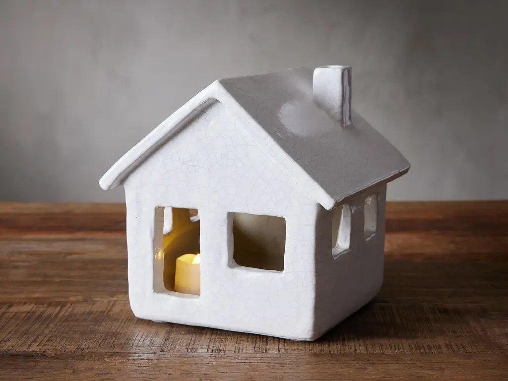Create a cozy touch to your home decor with the Ceramic Tealight House candle holder. You can add a soft glow to any area of your home by adding your favorite tealight or a mini flameless candle. The ceramic house features cutouts of windows and a door to create ambiance atmosphere perfect for decorating your tabletops, mantle and entryway.