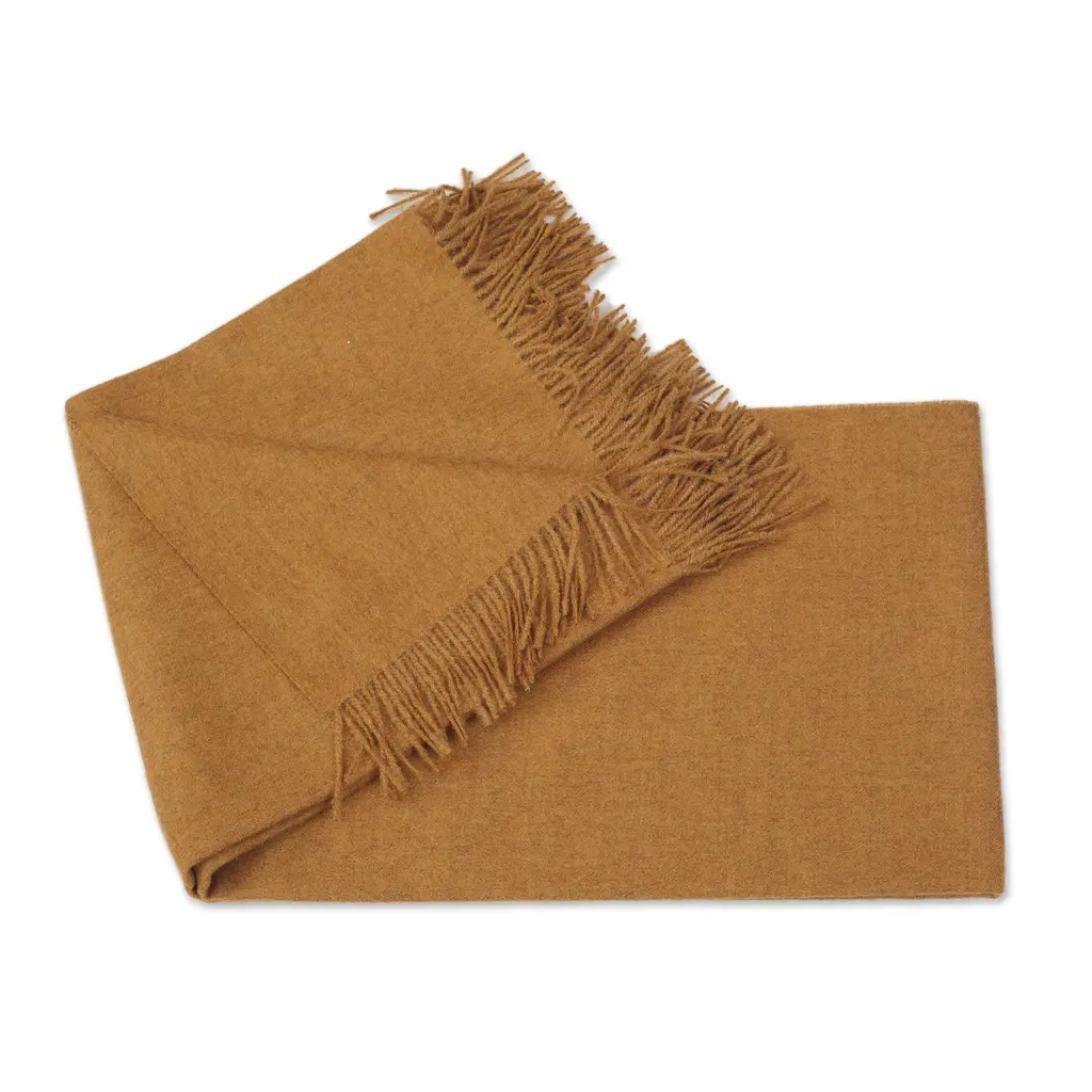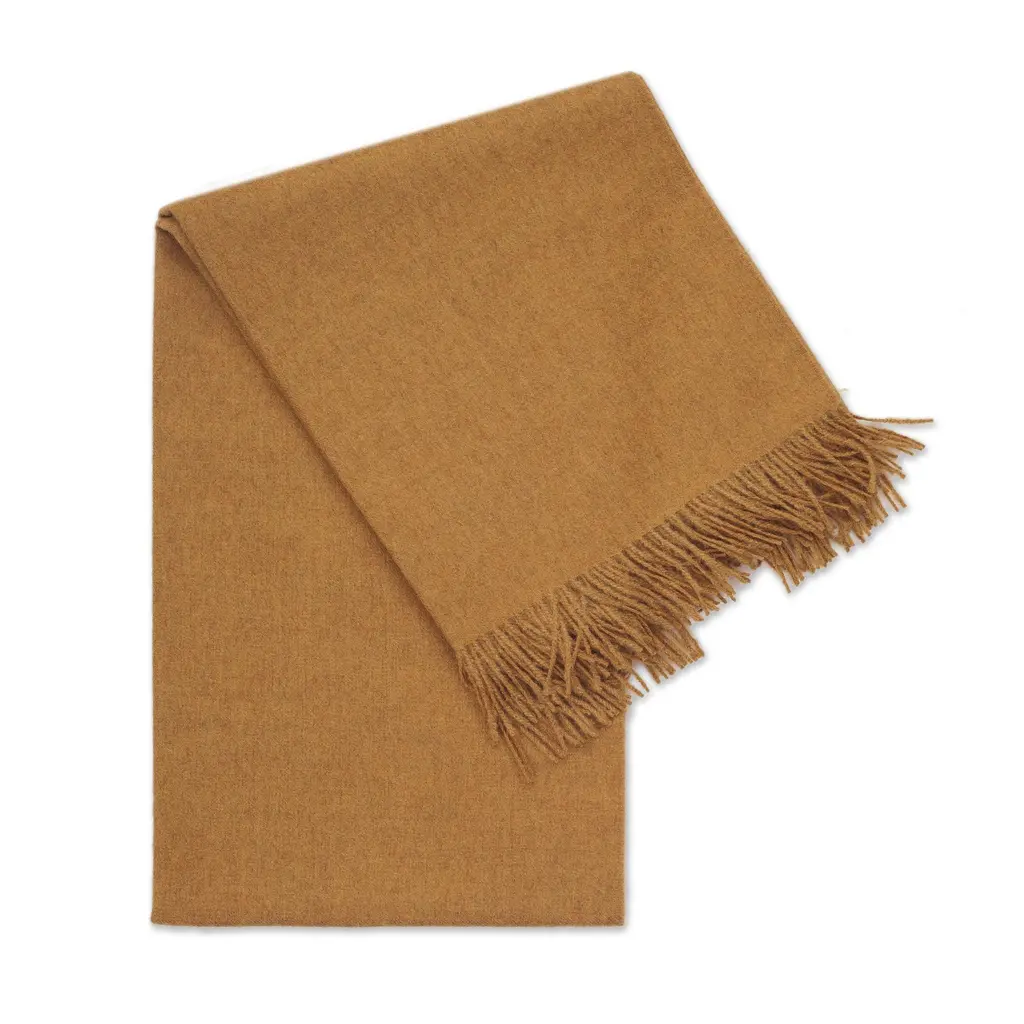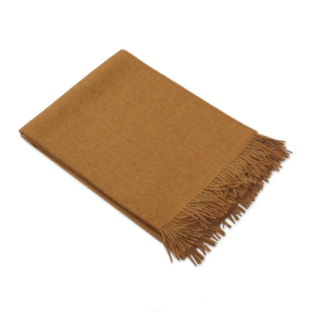 100% Baby Alpaca Throw Blanket In Solid Honey From Peru- Blissful Dream In Honey