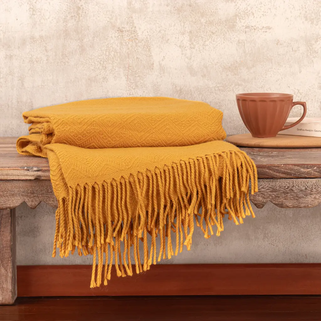 Bringing a blissful vibe to your home decor, this lovely throw blanket is presented by Nataly and Alberto. They invite you to celebrate the soft, pleasurable feeling of 100% baby alpaca wool. A solid color in honey gives the throw a sophisticated appeal, completed at each end with fringes. Baby alpaca refers to the fine fleece from the season's first shearing.