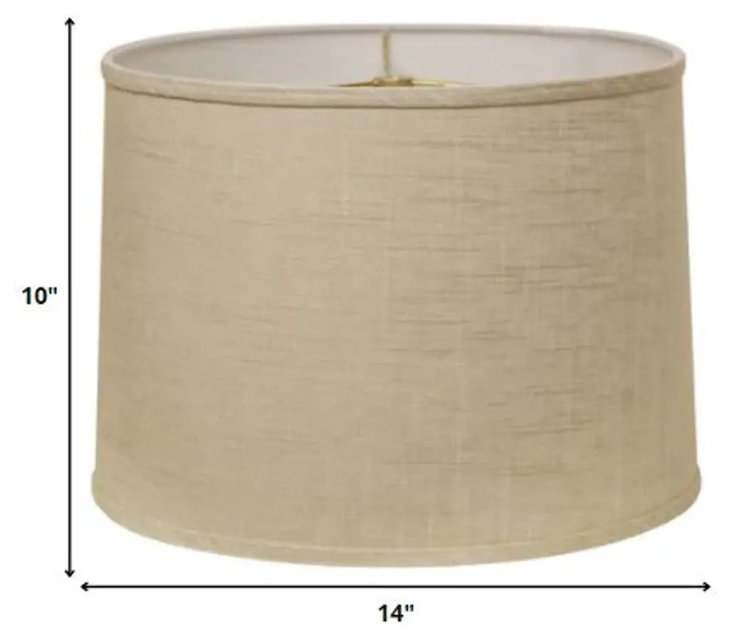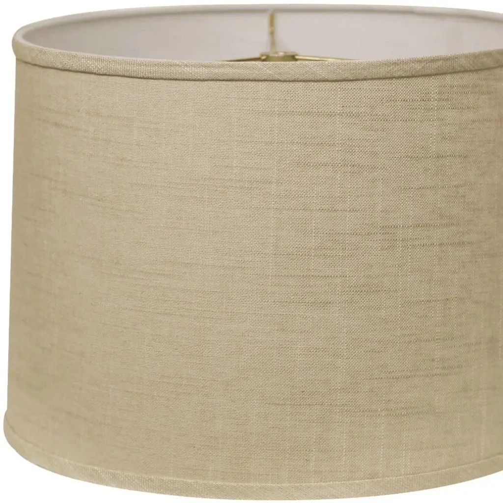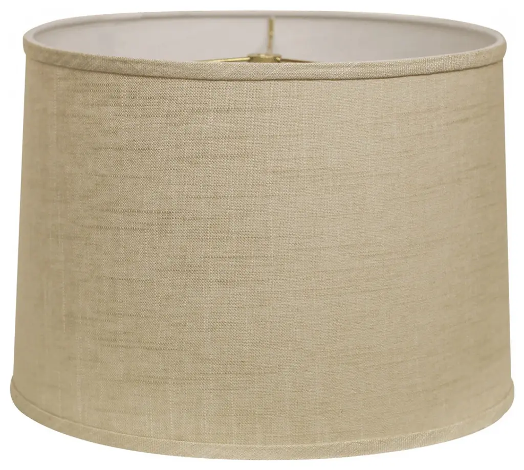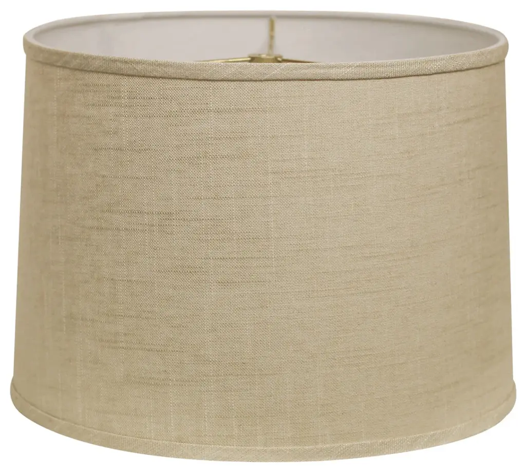 This Light Wheat Throwback Drum Linen Lampshade has a hint of mid-century modern flair and will be a great addition to your lamp base. This hardback lampshade includes a standard washer fitter that fits over a standard harp and can be used with your existing finial design. This high quality crafted drum shape has a slight slant to give it some visual interest and is crafted of the finest linen innsbruk cotton with a fold on top and bottom of the shade. 10" x 14" x 14"High Quality Fabric Lamp Shade.Includes Brass Finish Washer. Washer fitters sits on top of the harp.Intended for use with customer''s own finial.Shade measures 13" top diameter x 14" bottom diameter x 10" slant heightFeatures high-quality construction made from Linen Cotton Fabric.