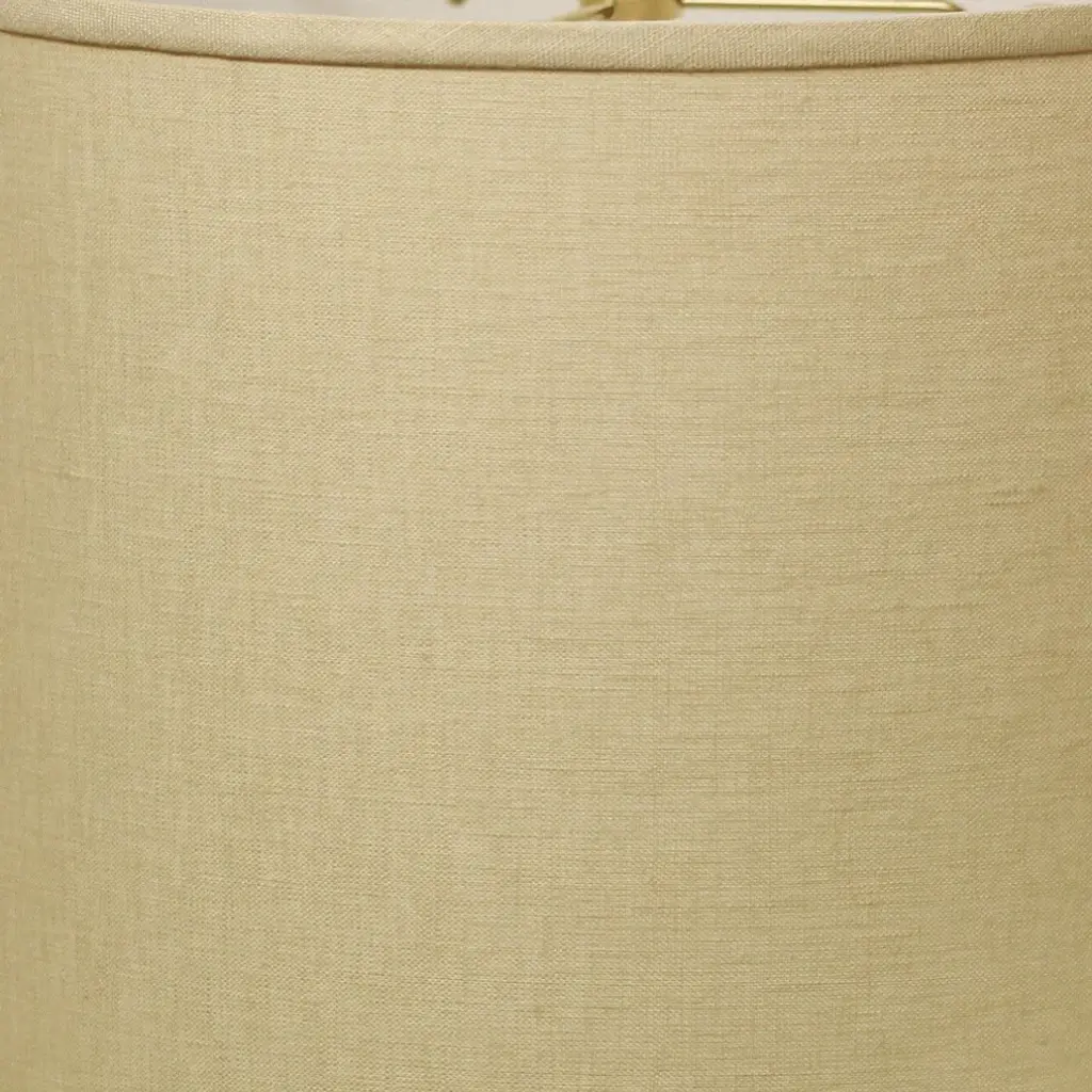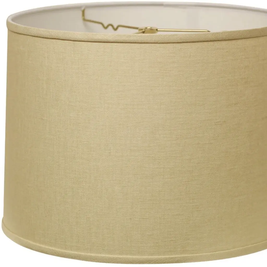 This Parchment Biege Throwback Drum Linen Lampshade has a hint of mid-century modern flair and will be a great addition to your lamp base. This hardback lampshade includes a standard washer fitter that fits over a standard harp and can be used with your existing finial design. This high quality crafted drum shape has a slight slant to give it some visual interest and is crafted of the finest linen innsbruk cotton with a fold on top and bottom of the shade. 10" x 14" x 14"High Quality Fabric Lamp Shade.Includes Brass Finish Washer. Washer fitters sits on top of the harp.Intended for use with customer''s own finial.Shade measures 13" top diameter x 14" bottom diameter x 10" slant heightFeatures high-quality construction made from Linen Cotton Fabric.