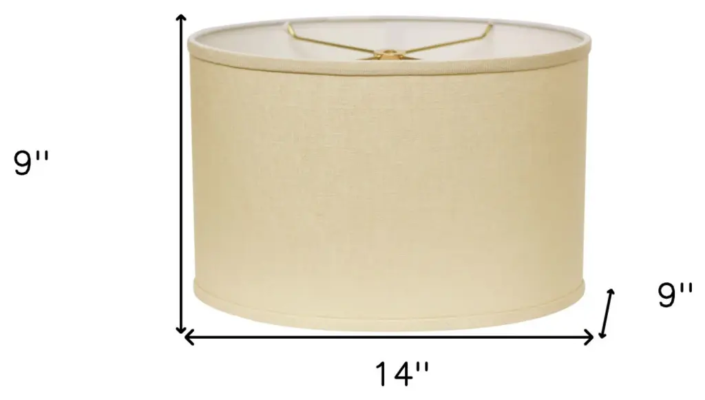 This Parchment Biege Throwback Oval Linen Lampshade has a hint of mid-century modern flair and will be a great addition to your lamp base. This hardback lampshade includes a standard washer fitter that fits over a standard harp and can be used with your existing finial design. This high quality crafted oval shape has a slight slant to give it some visual interest and is crafted of the finest linen innsbruk cotton with a fold on top and bottom of the shade. 9" x 14" x 9"High Quality Fabric Lamp Shade.Includes Brass Finish Washer. Washer fitters sits on top of the harp.Intended for use with customer''s own finial.Shade measures (9x14)" top diameter x (9x14)" bottom diameter x 9" slant heightFeatures high-quality construction made from Linen Cotton Fabric.