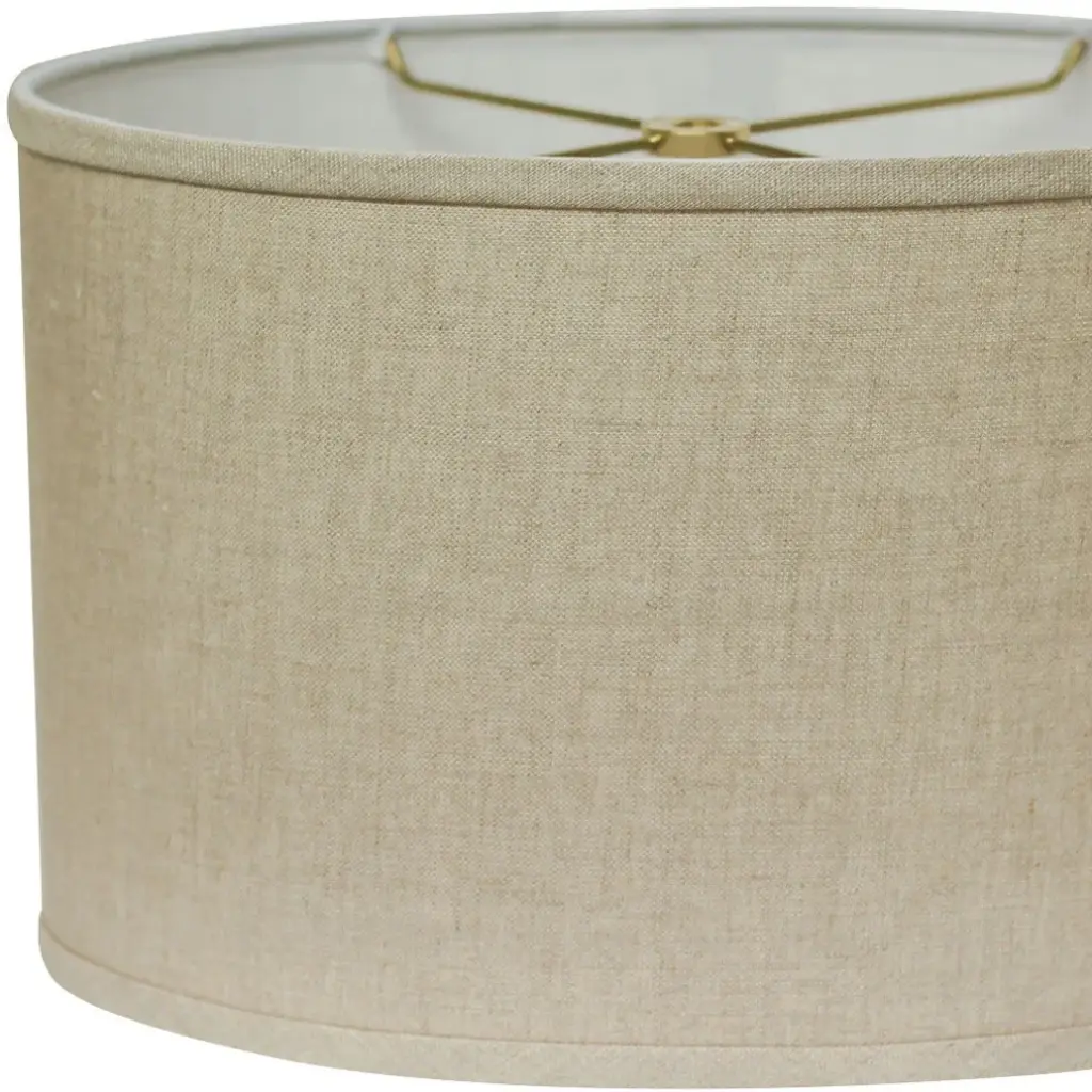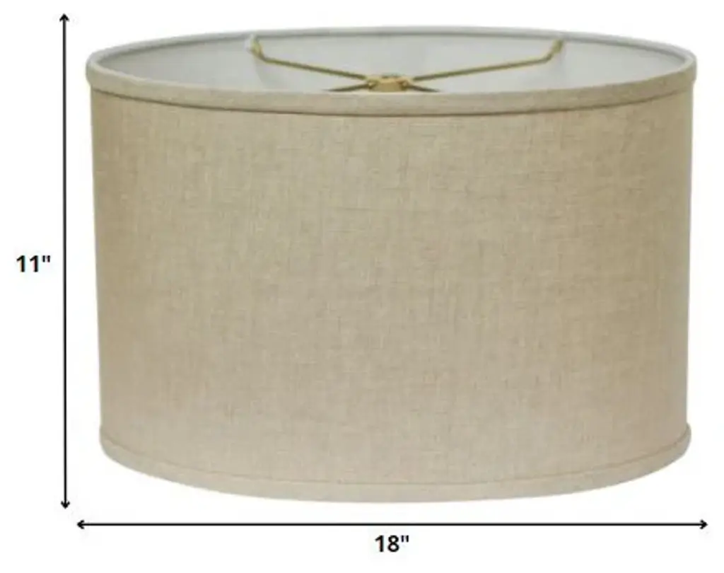 This Dark Wheat Throwback Oval Linen Lampshade has a hint of mid-century modern flair and will be a great addition to your lamp base. This hardback lampshade includes a standard washer fitter that fits over a standard harp and can be used with your existing finial design. This high quality crafted oval shape has a slight slant to give it some visual interest and is crafted of the finest linen innsbruk cotton with a fold on top and bottom of the shade. 11" x 18" x 12"High Quality Fabric Lamp Shade.Includes Brass Finish Washer. Washer fitters sits on top of the harp.Intended for use with customer''s own finial.Shade measures (12x18)" top diameter x (12x18)" bottom diameter x 11" slant heightFeatures high-quality construction made from Linen Cotton Fabric.