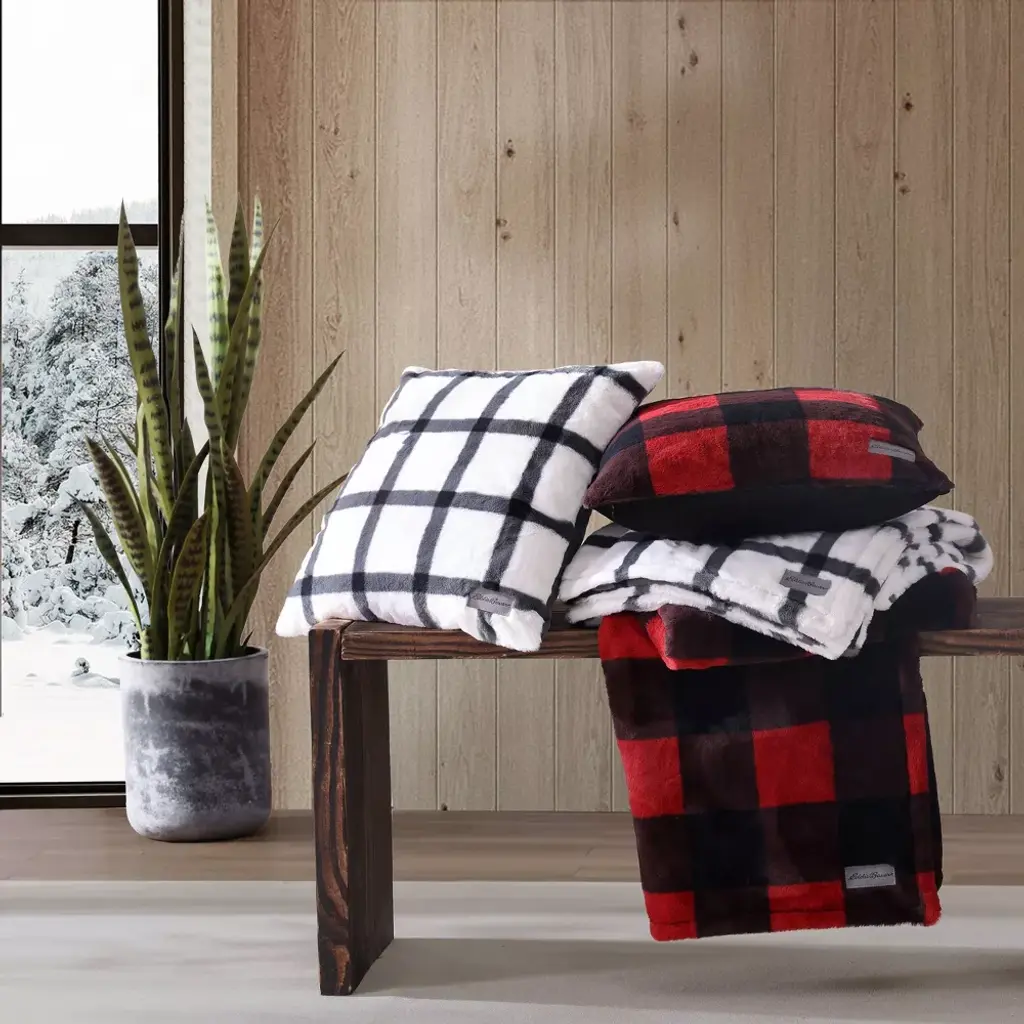 Eddie Bauer's luxurious faux fur collection is a must-have for cold winter nights. Made from 100% polyester, these throws are warm but lightweight. Great for packing, travel and storage. Front of the throw features a long pile "faux fur", while the back is a silky soft micro-mink. Each set features one throw and one pillow cover, pillow cover inserts sold separately. Throws can be purchased individually as well. Available in multiple colors and prints, sold separately. Machine washable for easy care