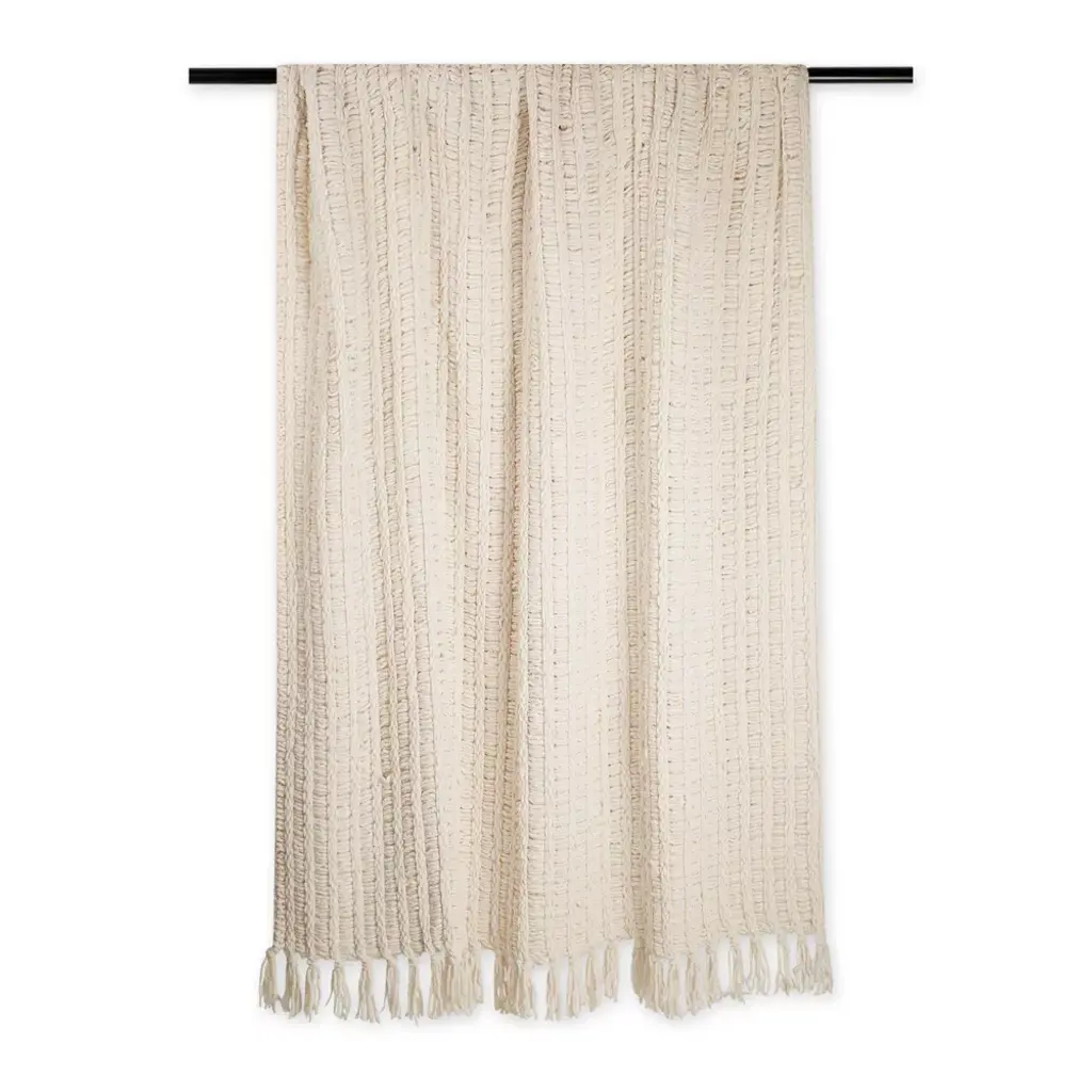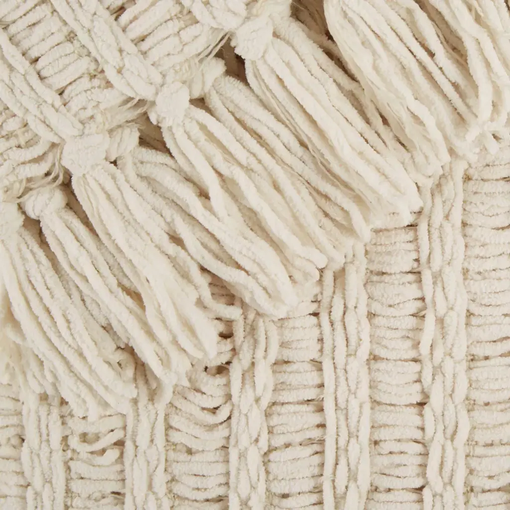 50"x60" Chenille Luxury Tassel Throw Blanket Cream - Design Imports: Soft, Woven, Decorative
