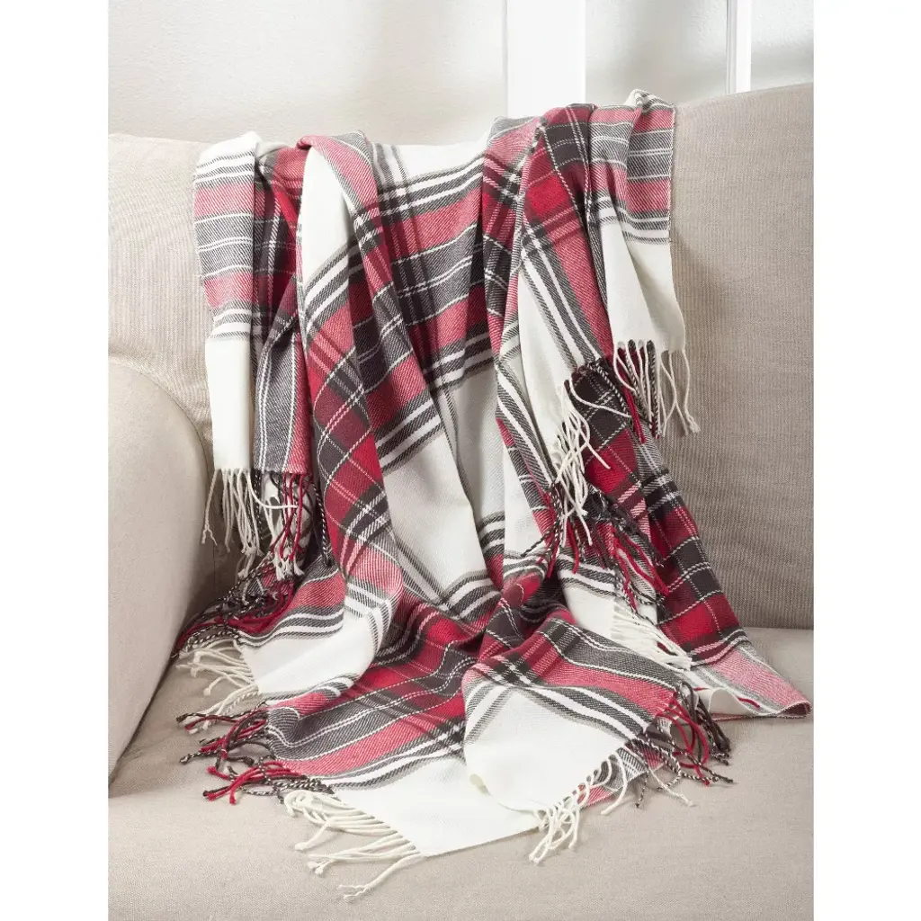 Wrap yourself in lightweight warmth and sensuous softness with this classic Plaid Tasseled Throw Blanket. Complete with fringed edges, this casual, yet chic throw adds a playful touch to your décor. It also brings beautiful color to a solid sofa or armchair, and it's easy to pair with a wide range of accent pillows within the same palette.