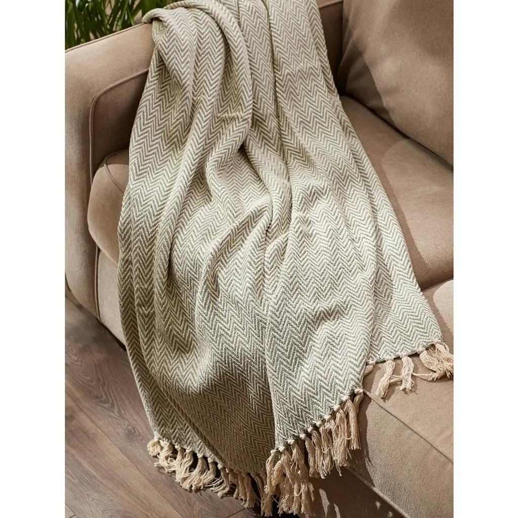 50"x60" Handloom Chevron Throw Blanket Green - Design Imports: Cotton, Hypoallergenic, Machine Washable