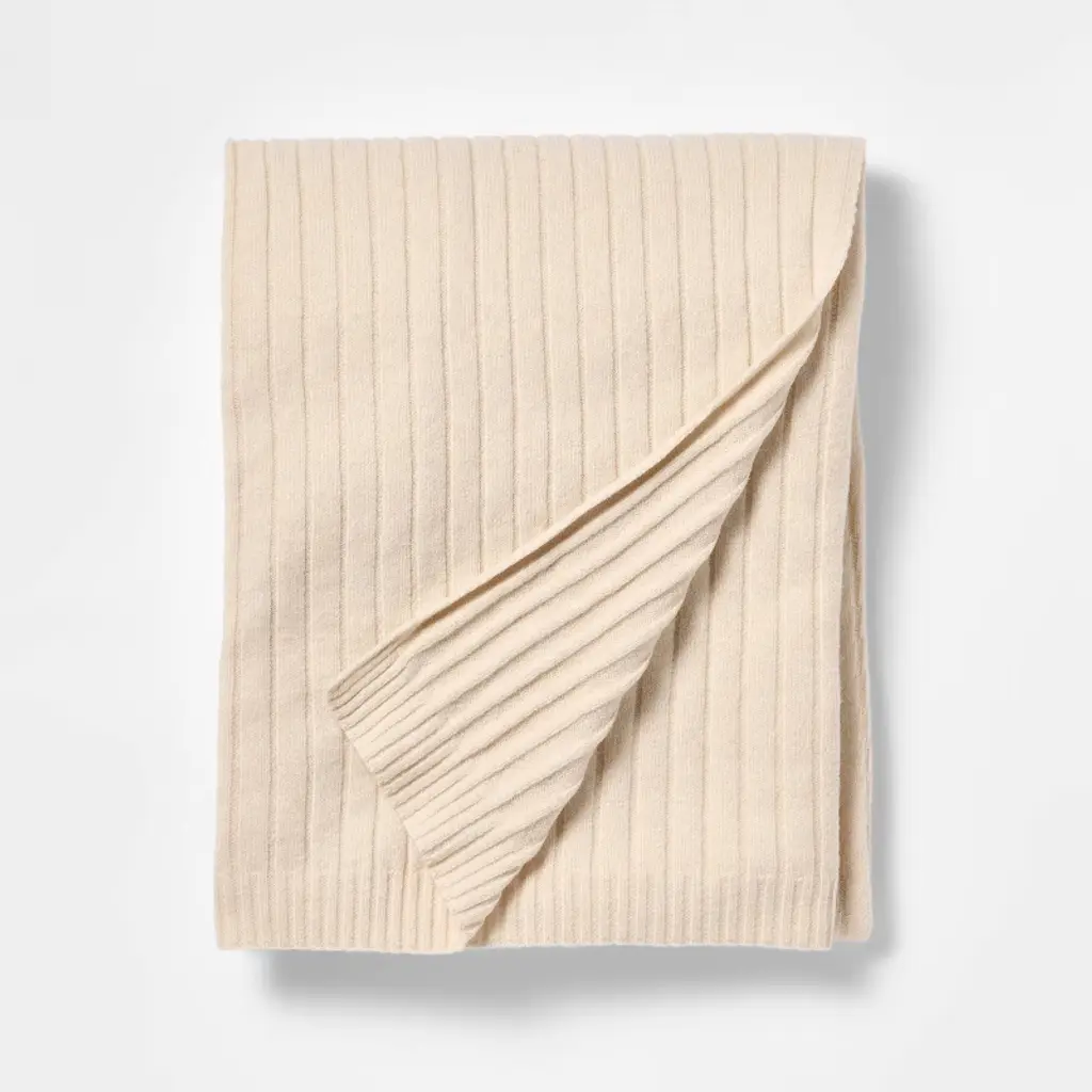 Add texture and dimension to your decor with this Knit Value Throw Blanket from Hearth & Hand™ with Magnolia. This rectangular throw features a midweight recycled polyester construction with a sweater-knit texture, detailed with raised ribbed stitching for added visual appeal. Perfect for curling up during cooler evenings or draping over furniture as a decorative accent, this versatile blanket offers easy care with its machine-washable fabric.Hearth & Hand™ with Magnolia: Gather • Create • Enjoy