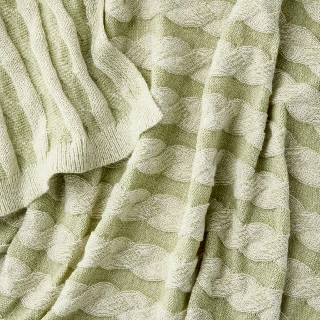 50"x60" Twisted Cable Throw Blanket Green And Cream - Threshold™ Designed With Studio Mcgee