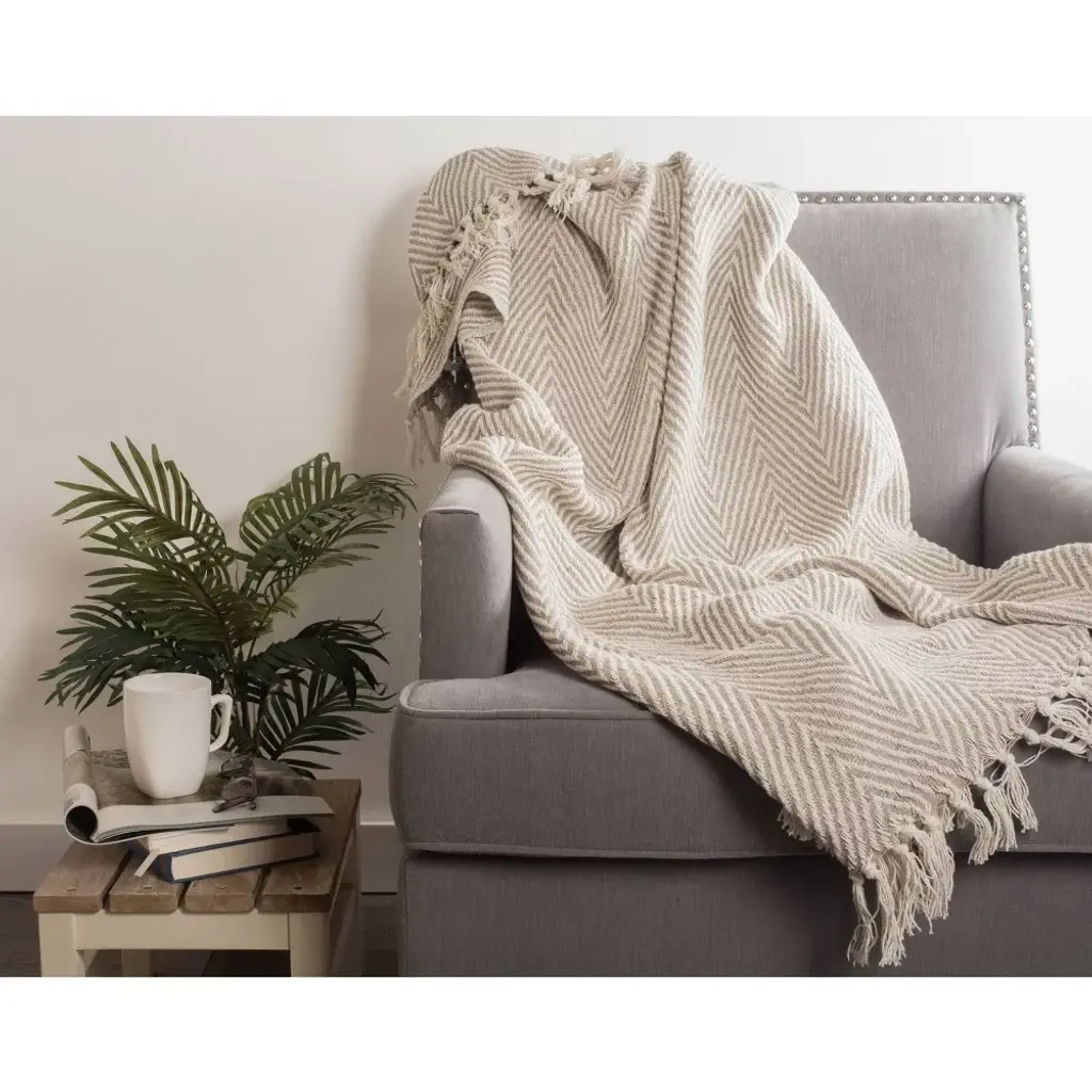 50"x60" Urban Throw Blanket Stone - Design Imports: Cotton, Woven, Hypoallergenic, Midweight
