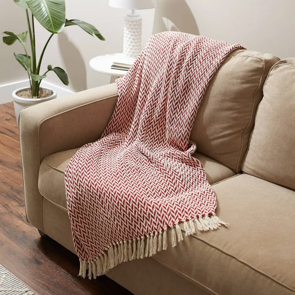 50"x60" Zig-zag Throw Blanket Tango Red - Design Imports: Woven Cotton, Lightweight, Machine Washable