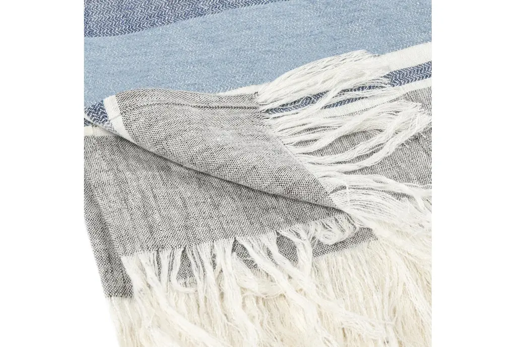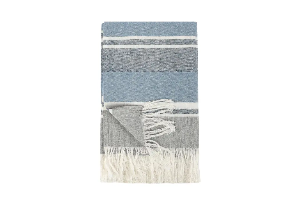 Enhance your living space with the 50X70 Blue + Gray Linen Stripe Throw, a perfect blend of comfort and style. This throw is designed to provide warmth and a touch of modern sophistication to any room. Made from 100% Belgian flax linen, it offers durability and a soft, natural feel.
