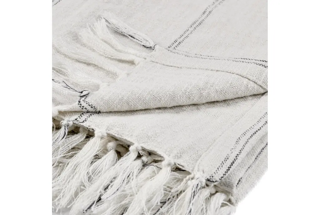 50x70 Ivory + Gray Cotton Woven Stripe Oversized Fringed Throw