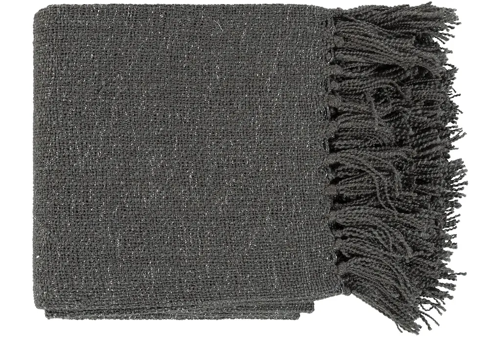 Add a touch of modern style to your home with the Accent Throw by Surya. This rectangle throw features a sophisticated charcoal color with metallic silver accents, making it a versatile addition to any room. Made from a blend of acrylic and lurex, it offers both comfort and durability.