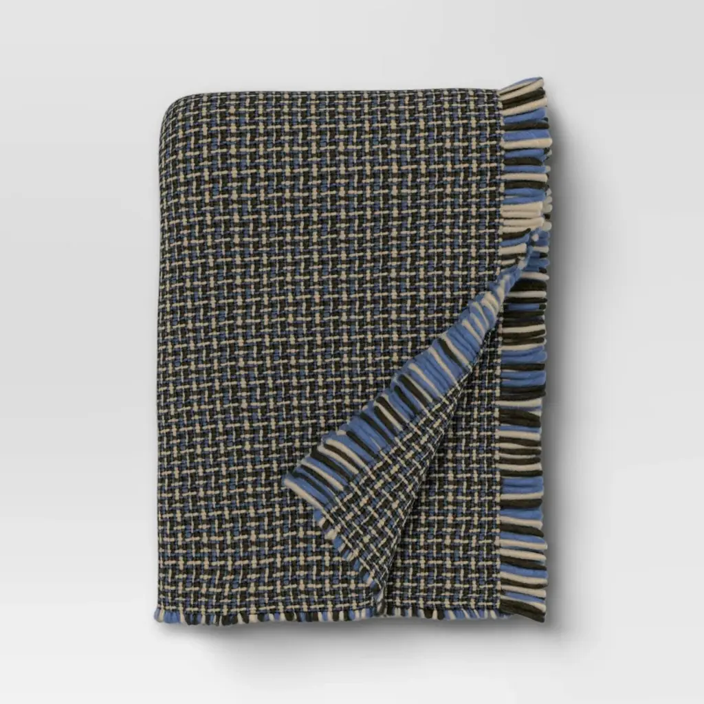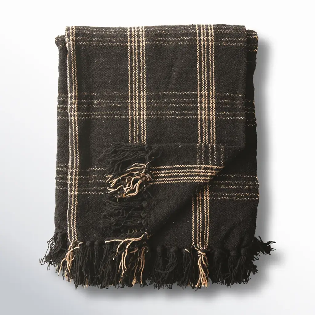 Alloy Dark Blue Stripes Pattern Soft Merino Linen Handloom Throw