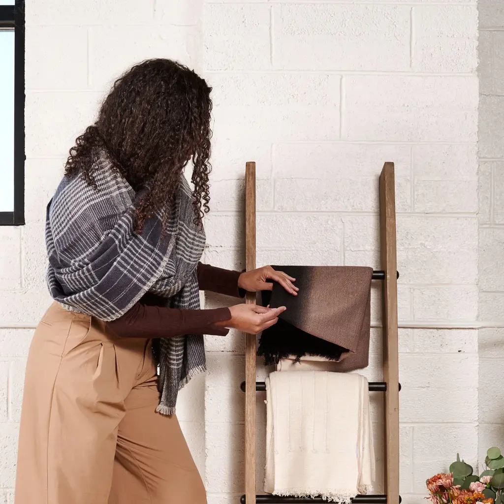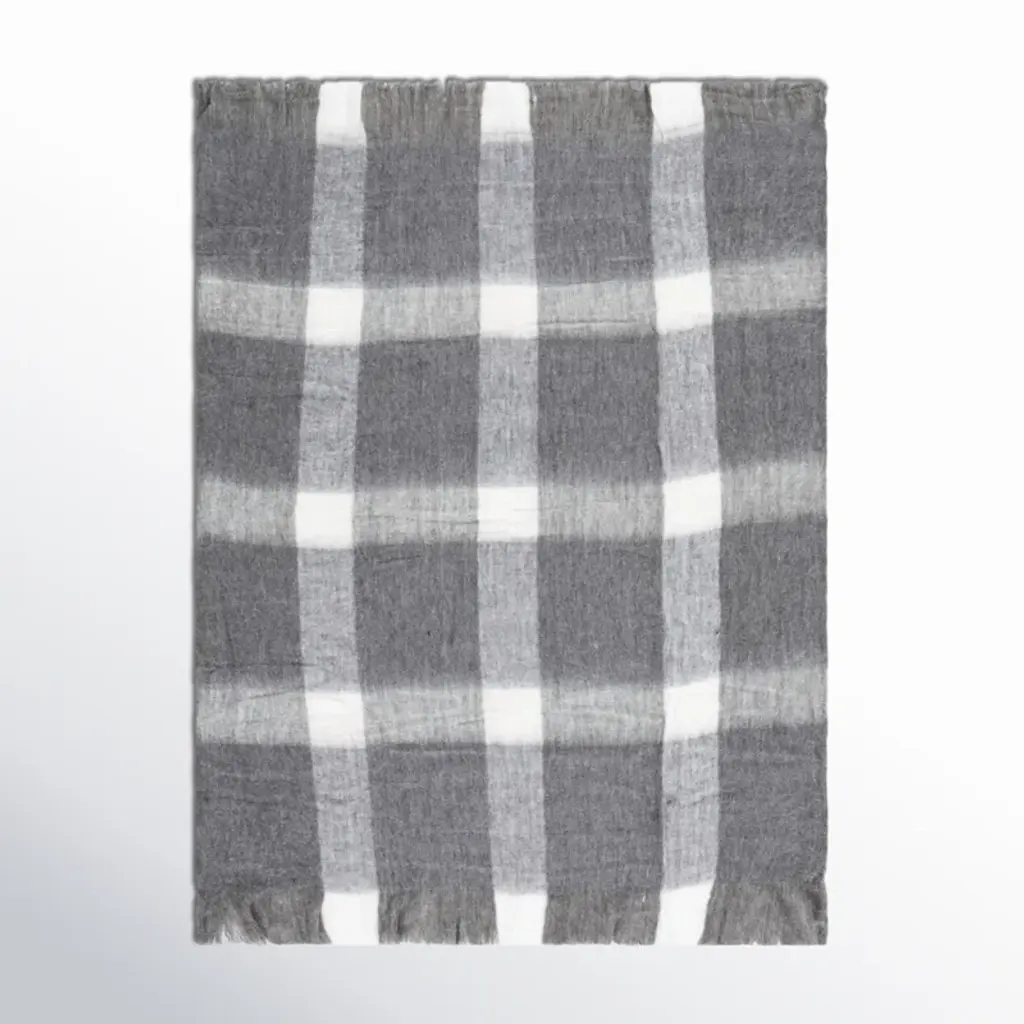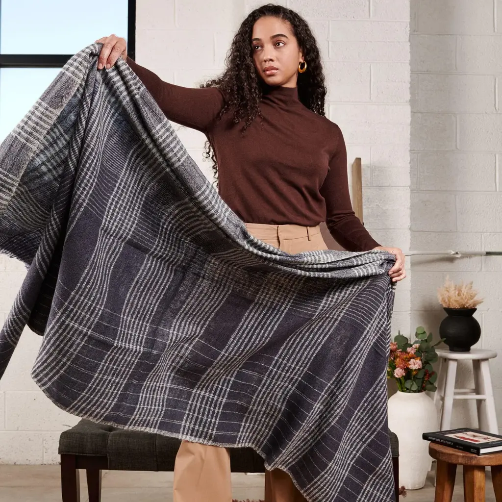 Alloy Throw is a modern take on combining stripes & checks pattern in a classic color palette and fine detail of hand weaving done meticulously on a handwoven textile. Each piece is 100% handmade making it a unique sustainable throw which is both classic and minimal modern in its appeal. Alloy throw is soft to touch and wears well over time. Requiring attention to detail and finishing, this throw luxuriously combines heritage value. high quality craftsmanship & it is reversible to arrange and use. Fringes are kept short for a modern look. For this textile, we are using only the highest quality of 100% pure merino from Australia. Eco friendly dyes Swiss dyes are specifically engineered to promote the lifespan of each throw. As this luxurious piece is completely handmade from start to finish, each piece is unique. Classic in design, Alloy is a timeless throw / blanket will complement your personal or living spaces, is a thoughtful gift and also supports artisan communities ethically. Throw Size: 110 cm X 210 cm Material: 100% soft merino from Australia , 100% pure linen from Belgium. Colors: Alloy gray , navy and white Artisan base: Ethically & responsibly handwoven by artisans in Nepal. Wash care: Gently hand wash using gentle detergents. Hang dry in cool shaded place or delicately dry clean only. What Makes Your Purchase Sustainable ? Eco friendly dyes free of toxic chemicals used. Support employment of women artisans. 100% handmade ethical manufacturing process by artisans. Uses only 100% natural responsibly sourced materials. Small batch production ensures higher quality & less wastage.