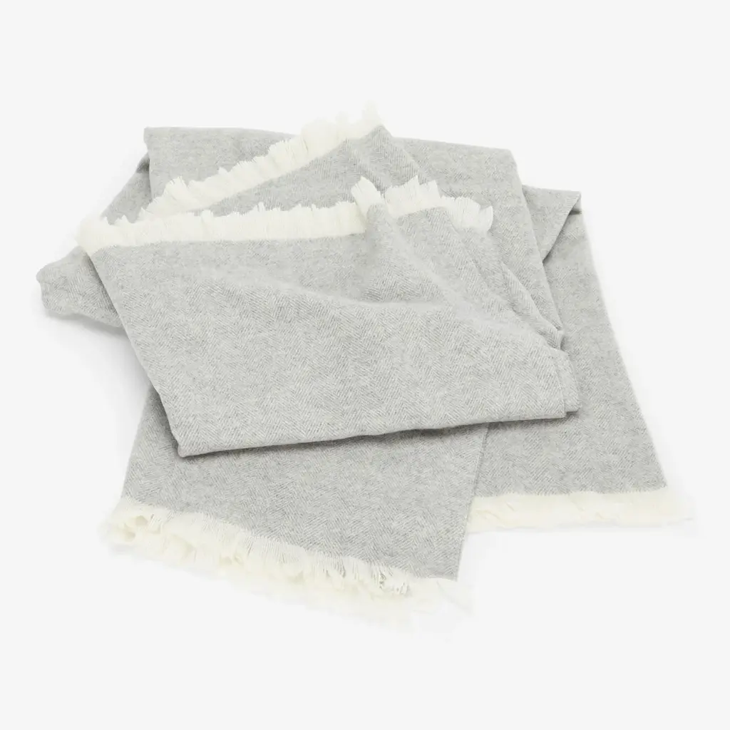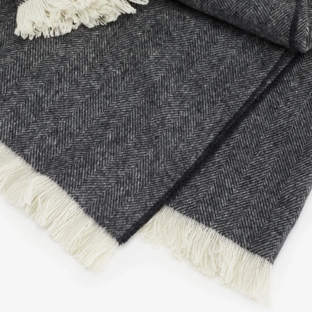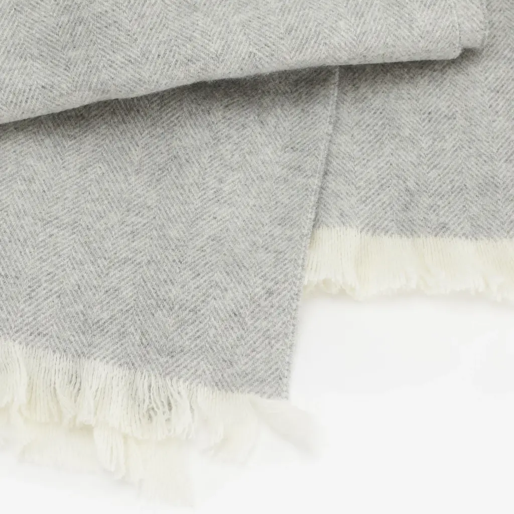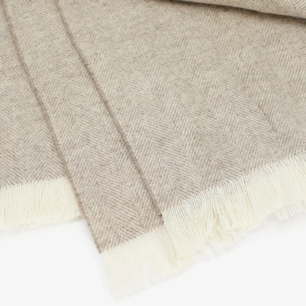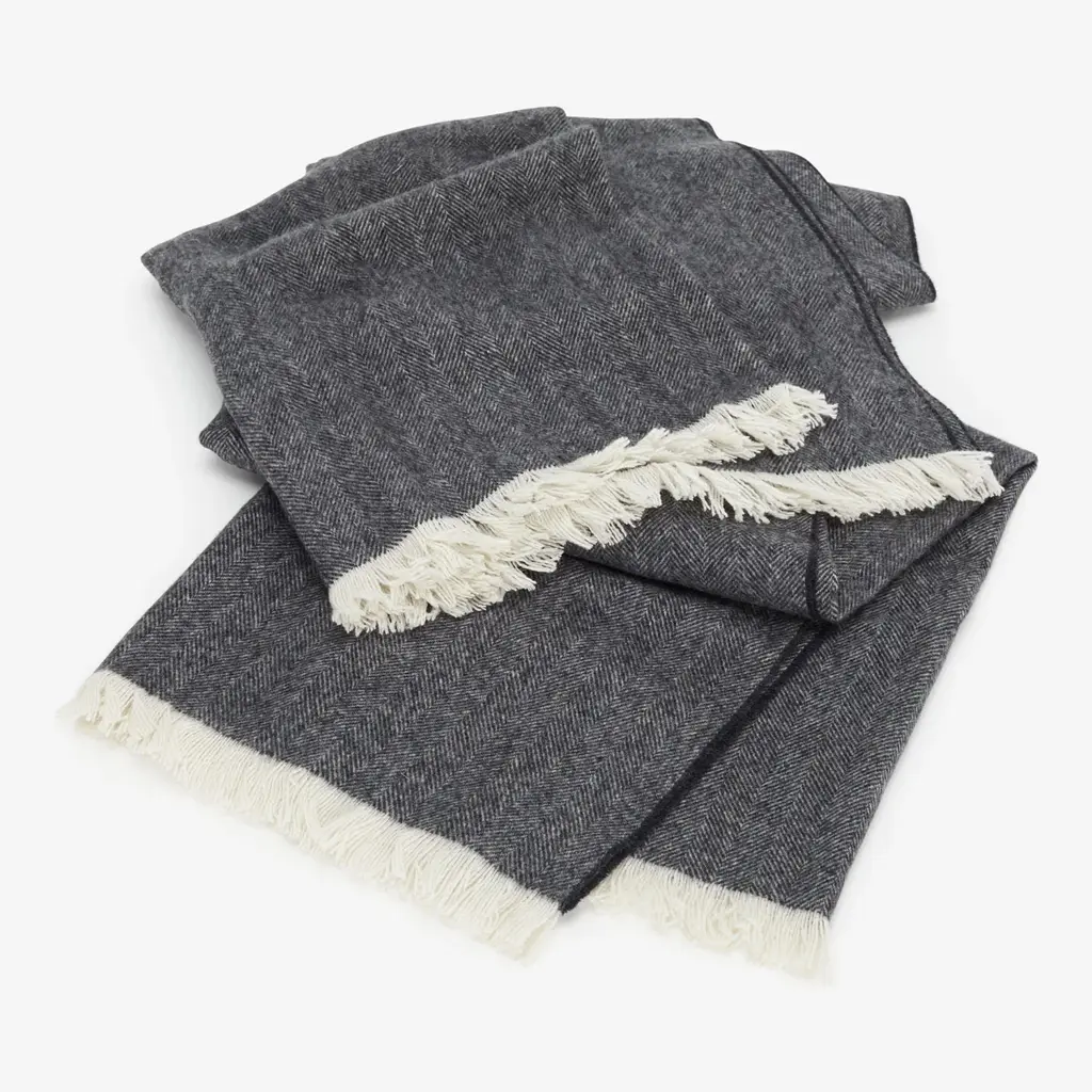 The herringbone pattern of the Alpit Throw is extremely elegant and makes it suitable for every space of your house: on your bed or on your sofa to warm you up during the cold seasons or just to decorate the room. Alpi is made of wool and cashmere: these precious fibers give the throw a softness and warmth making it a practical product to use. The Alpi throw is finished with a small fringe on both sides. Made in Italy.