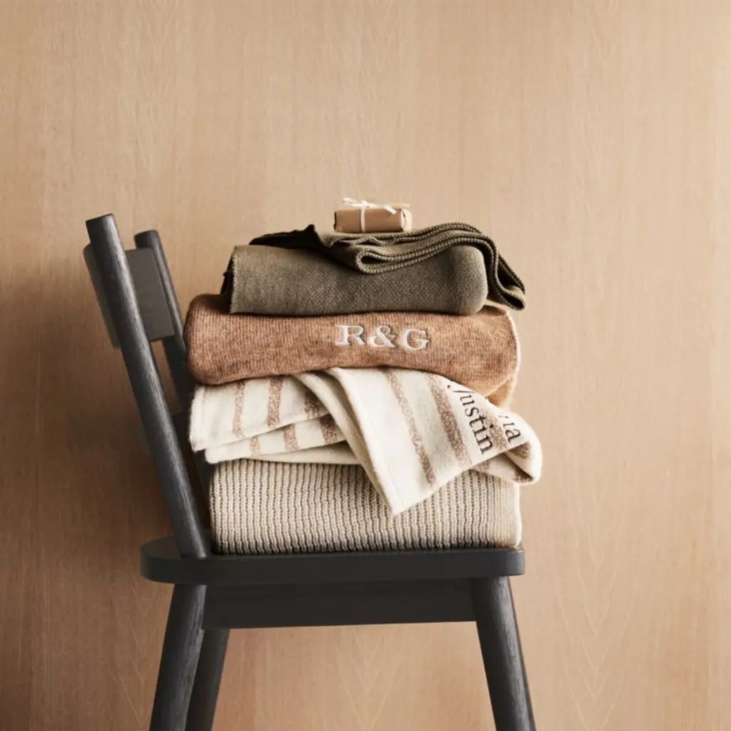 Whether you choose the ivory or camel brown side, our reversible throw blanket has got you covered in cozy. Made of recycled polyester, acrylic and wool, the throw is incredibly soft. We love the heathered look and the blanket-stitch edging that gives the blanket attention-getting details. Drape over the back of a sofa or spread out at the foot of the bed to keep the throw close at hand when there's a chill in the air.