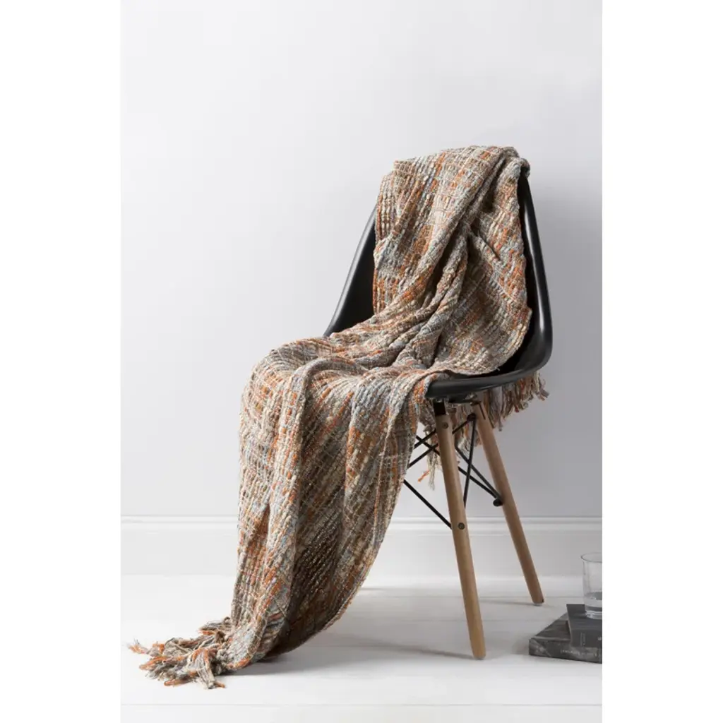 Showcasing a colorful hue, fringed edge, and woven design, this lovely throw is perfect for any aesthetic. Fold it on the master bed for a pop of pattern, or use it on your favorite armchair for the perfect spot to cozy up with your latest read.