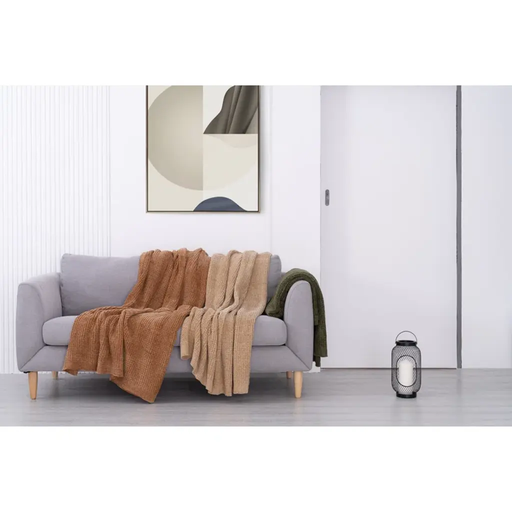 The incredibly soft touch of this Chenille throw is enough to make it one of your top home essentials. We think a cozy blanket is a key part of a healthy lifestyle. This throw offers a lightweight and irresistibly cozy layer and is Ideal if you also want to add a subtle accent of color to your room. Mixing fine waffle patterns with unique variations in texture provides warmth without weight.
