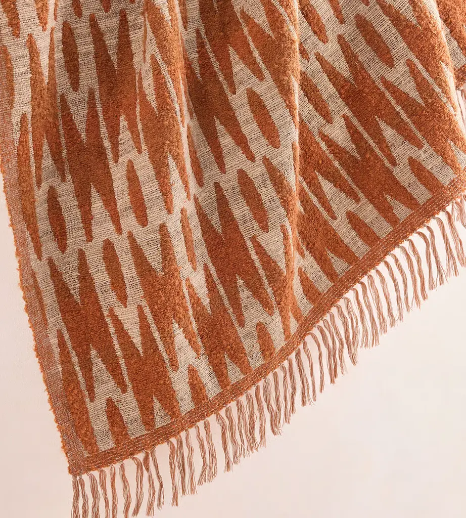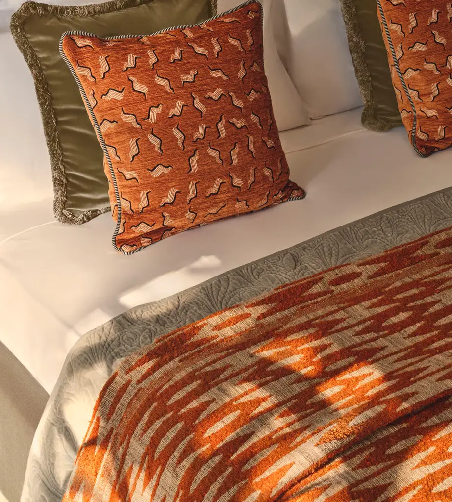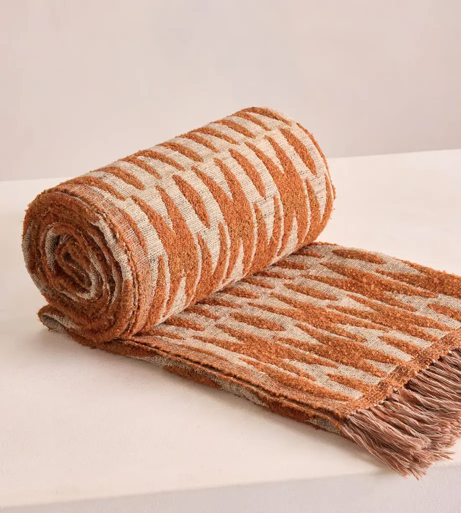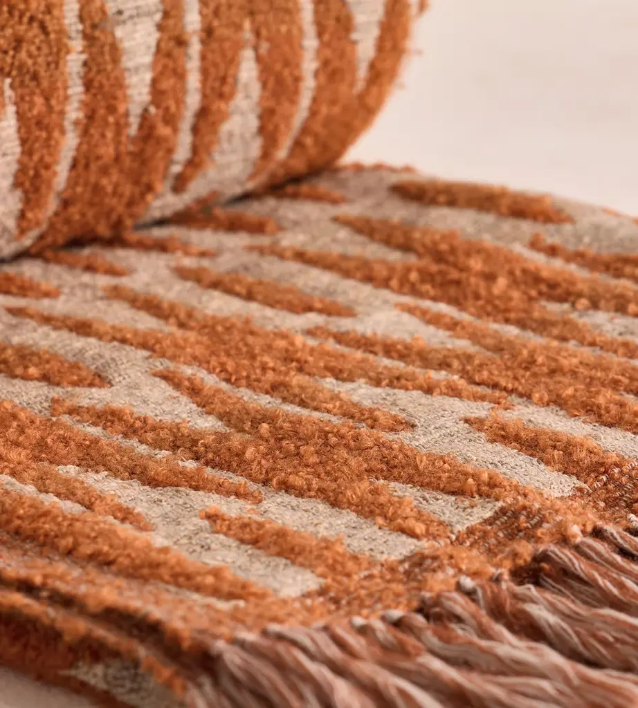 Woven in a wool blend, the bold geometric pattern is balanced by a soft, inviting finish. Inspired by the broadcasting history of White City House, the Auden throw is designed to subtly reinterpret traditional analogue equipment, woven in a blend of fabrics with a geometric pattern that's found throughout the House.