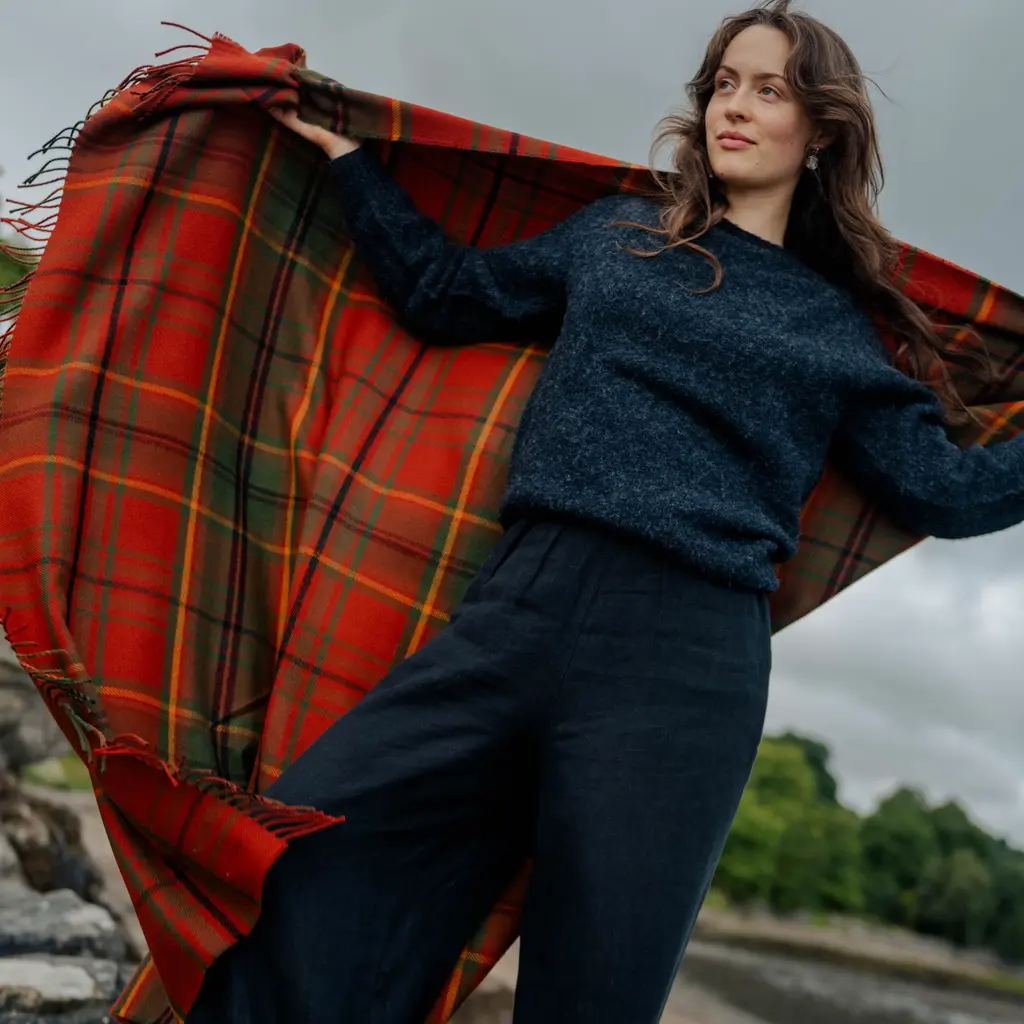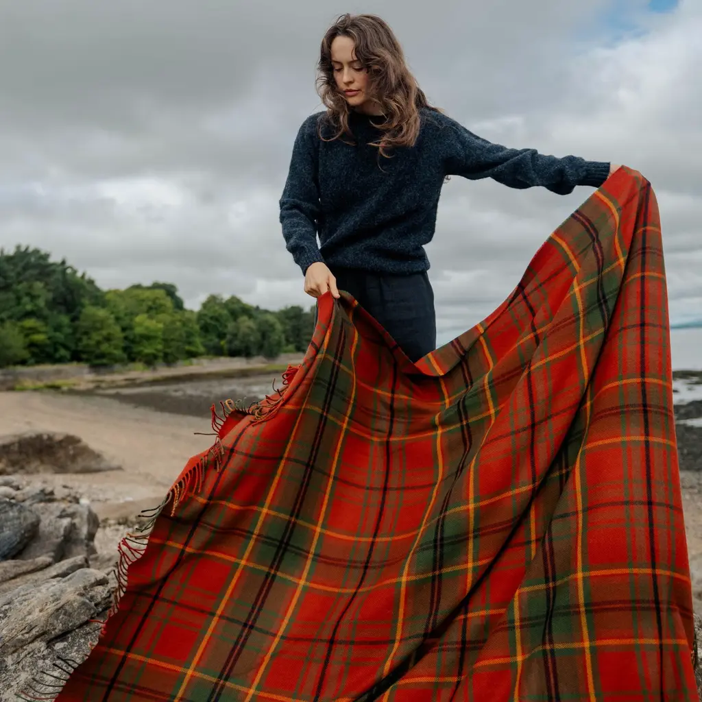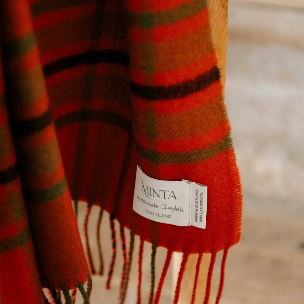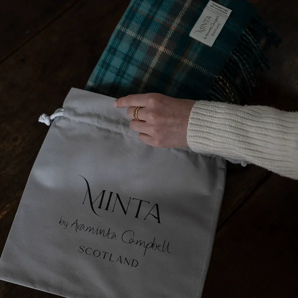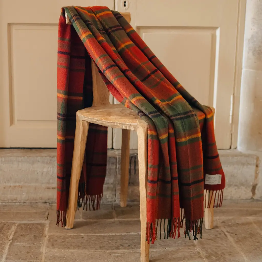 100% Lambswool – luxuriously soft, naturally warm and comfortable, inspired by Scotland’s Woodlands canopy of Autumn foliage. Designed in Scotland by renowned textile designer, Araminta Campbell. Made in Scotland, woven in a family run 200 year old Scottish mill.Limited Edition, exclusive, collectible piece, made in small batches. Unique Araminta Campbell Palette of dark olive, brown, black, hirst orange and auburn.Generous Size of 140 × 180cm ideal for draping over beds, sofas or armchairs, adding warmth and timeless Scottish elegance to any space.Comes with a Branded Cloth Bag to keep your throw safe and is perfect for gifting.
