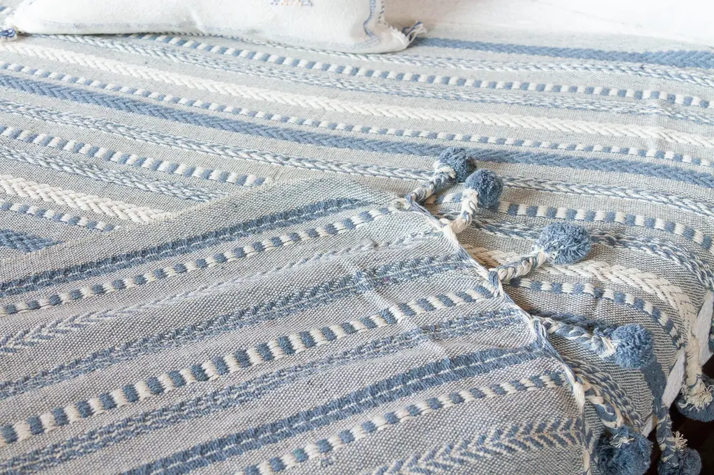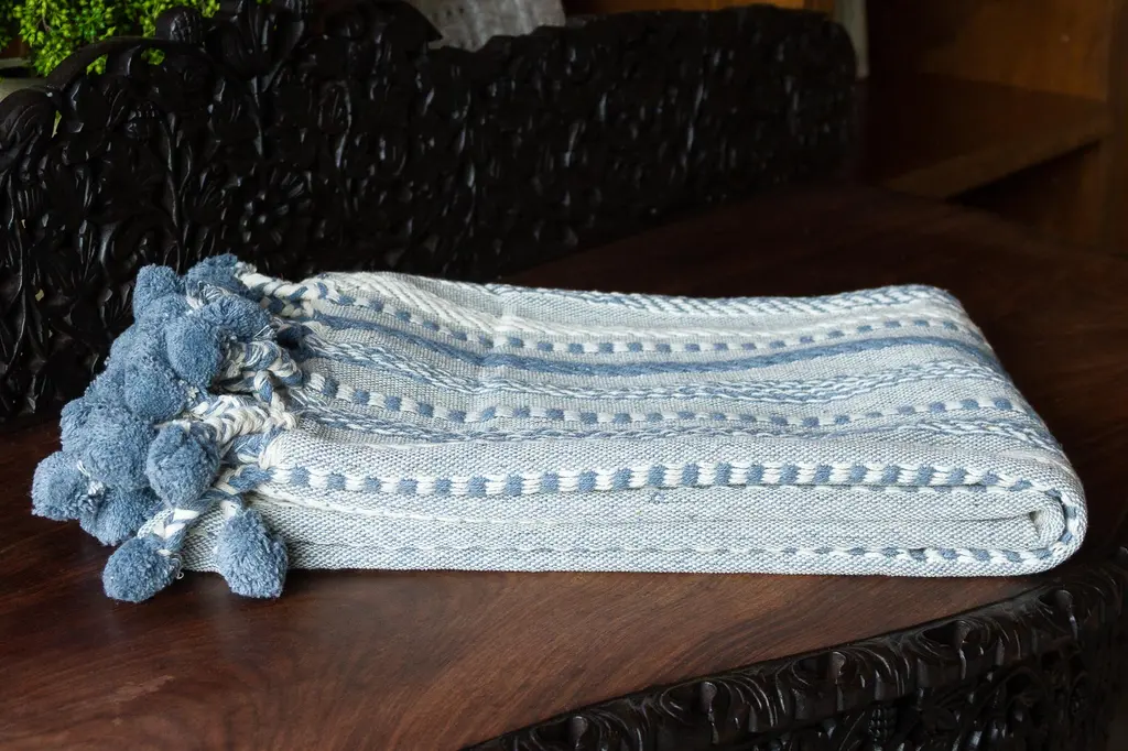 Azul Hand-Loomed Cotton Pom-Pom Throw