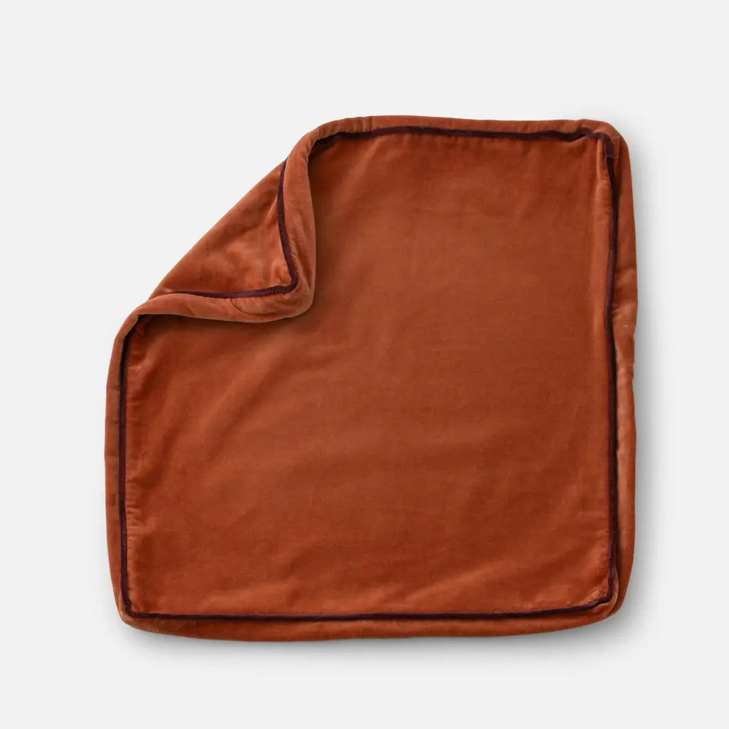 The ultimate in cozy luxury, cashmere weaves an irresistibly soft throw blanket. Made of a blend of recycled cashmere and wool in persimmon-inspired orange, the blanket reverses to a warm natural hue, getting a pop of contrast from a crisp outline of white piping. Tossed on a sofa, armchair or bed with the coordinating Bardot pillow, our exclusive throw layers on warmth and indulgence throughout the cooler months.