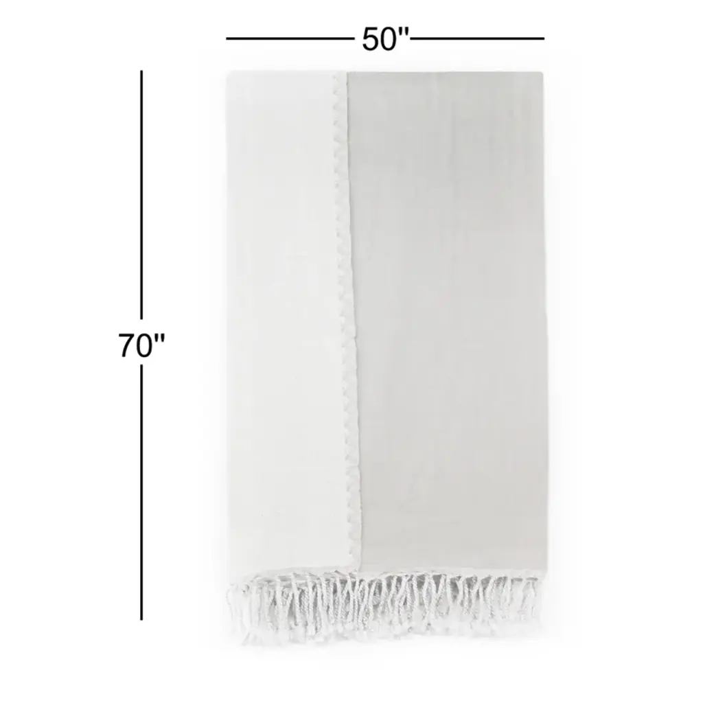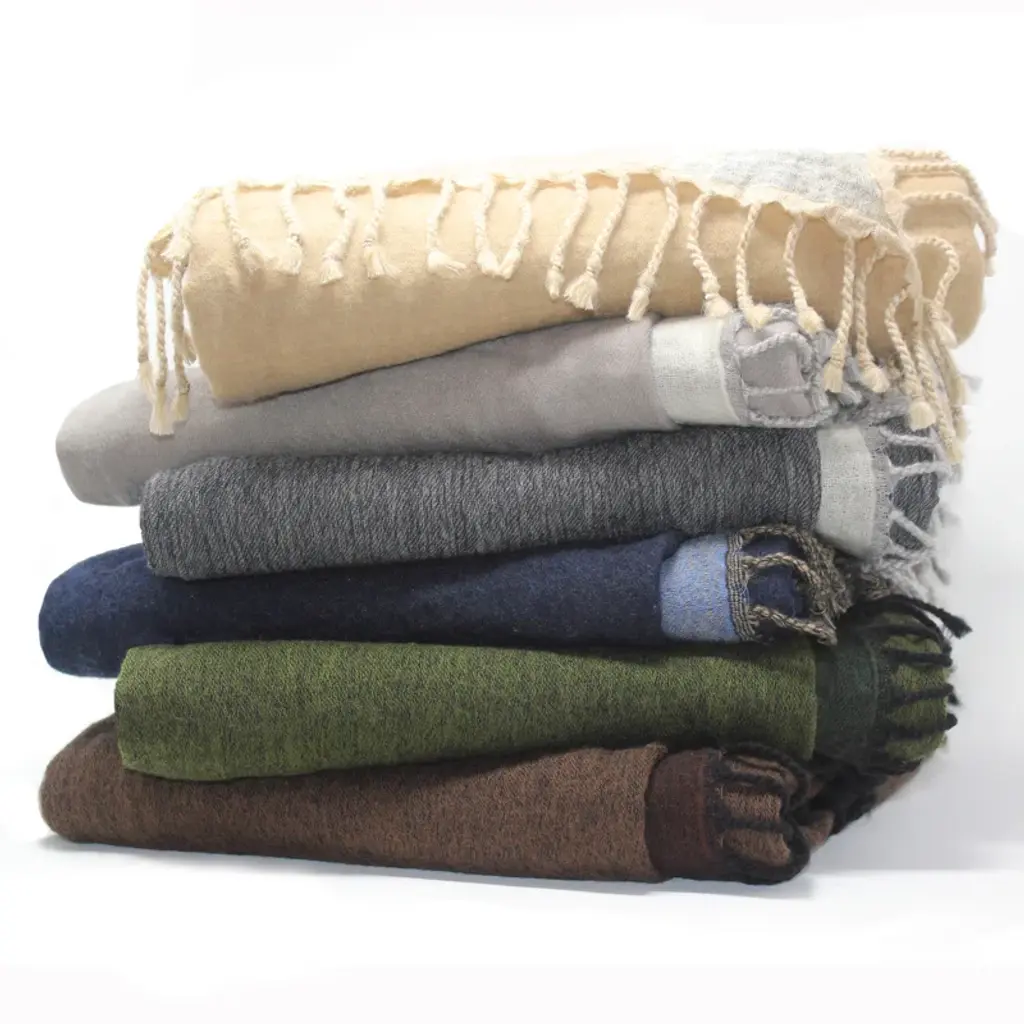 This throw is perfectly soft and will keep you very warm in the cold winter months. The oversized throw is fully to a contrasting and complimentary color and is has beautiful fringe on the 2 sides.
