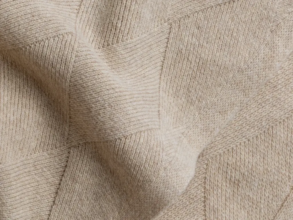 A modern classic in texture and tone. Knit from 100% merino wool in a subtle basketweave pattern that adds inviting warmth to your bed or sofa. Its generous size and neutral palette make it endlessly versatile. Pair with matching pillows or drape on its own for a soft, understated accent.