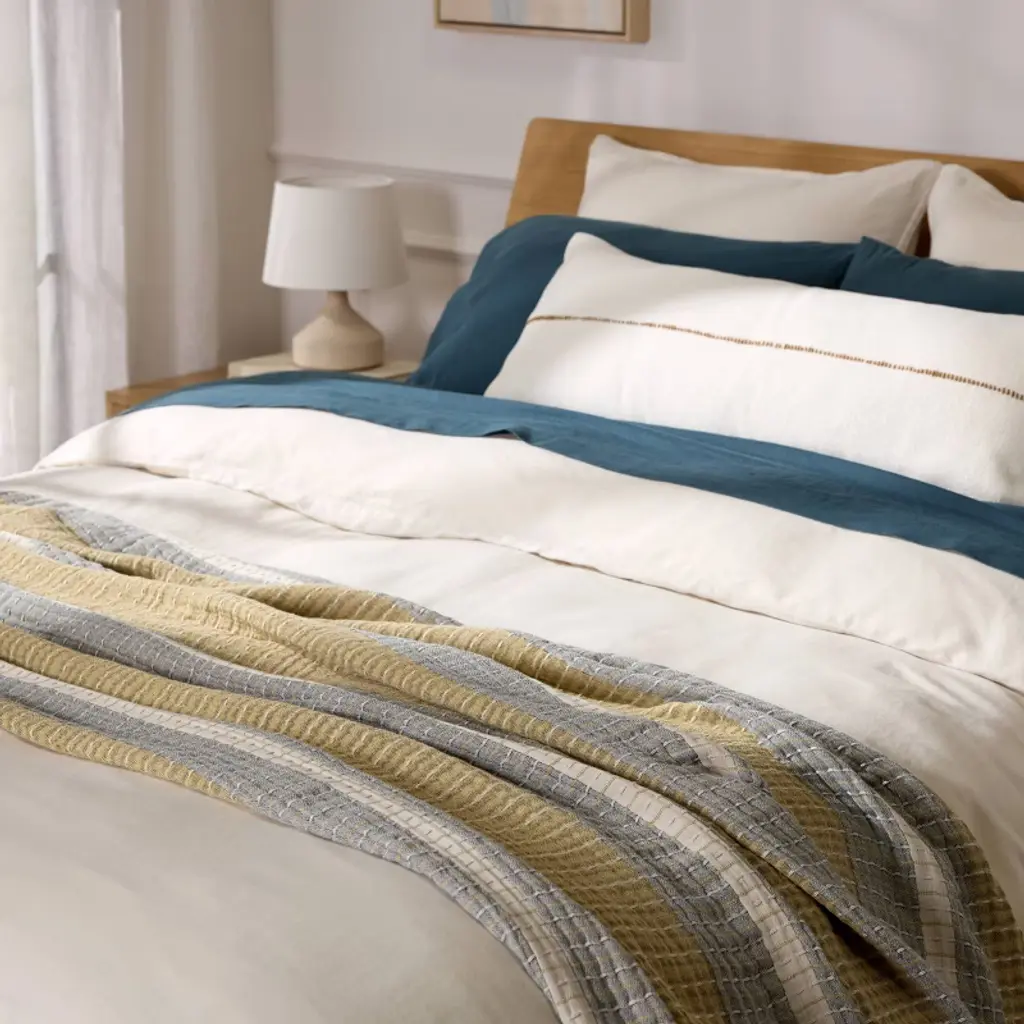 Introducing: Parachute for Target. Impossibly soft bedding and bath linens that inspire just five more minutes. Transform your space – and your everyday routines – with this exclusive collection. Perfect for those who want a versatile, lightweight blanket – our airy Beachcomber Stripe Throw adds just the right amount of warmth and casual style. Crafted from premium 100% cotton for a soft, breezy feel. Discover our entire rainbow of perfect neutrals and muted jewel tones – available in solids and stripes that mix and match with ease. Parachute for Target: Almost too comfortable.