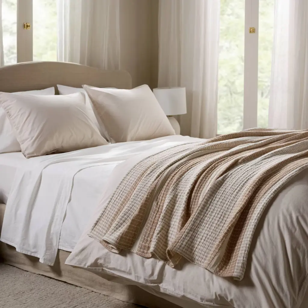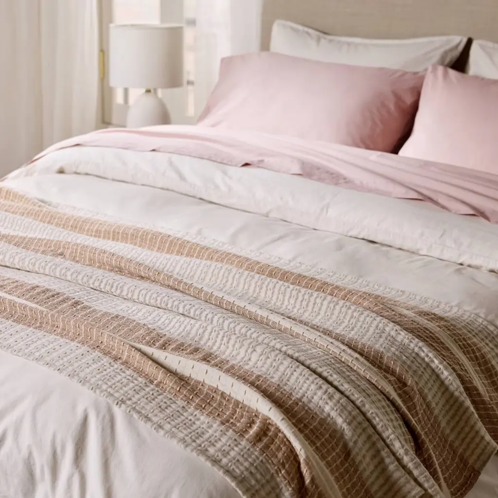Introducing: Parachute for Target. Impossibly soft bedding and bath linens that inspire just five more minutes. Transform your space – and your everyday routines – with this exclusive collection. Perfect for those who want a versatile, lightweight blanket – our airy Beachcomber Stripe Throw adds just the right amount of warmth and casual style. Crafted from premium 100% cotton for a soft, breezy feel. Discover our entire rainbow of perfect neutrals and muted jewel tones – available in solids and stripes that mix and match with ease. Parachute for Target: Almost too comfortable.