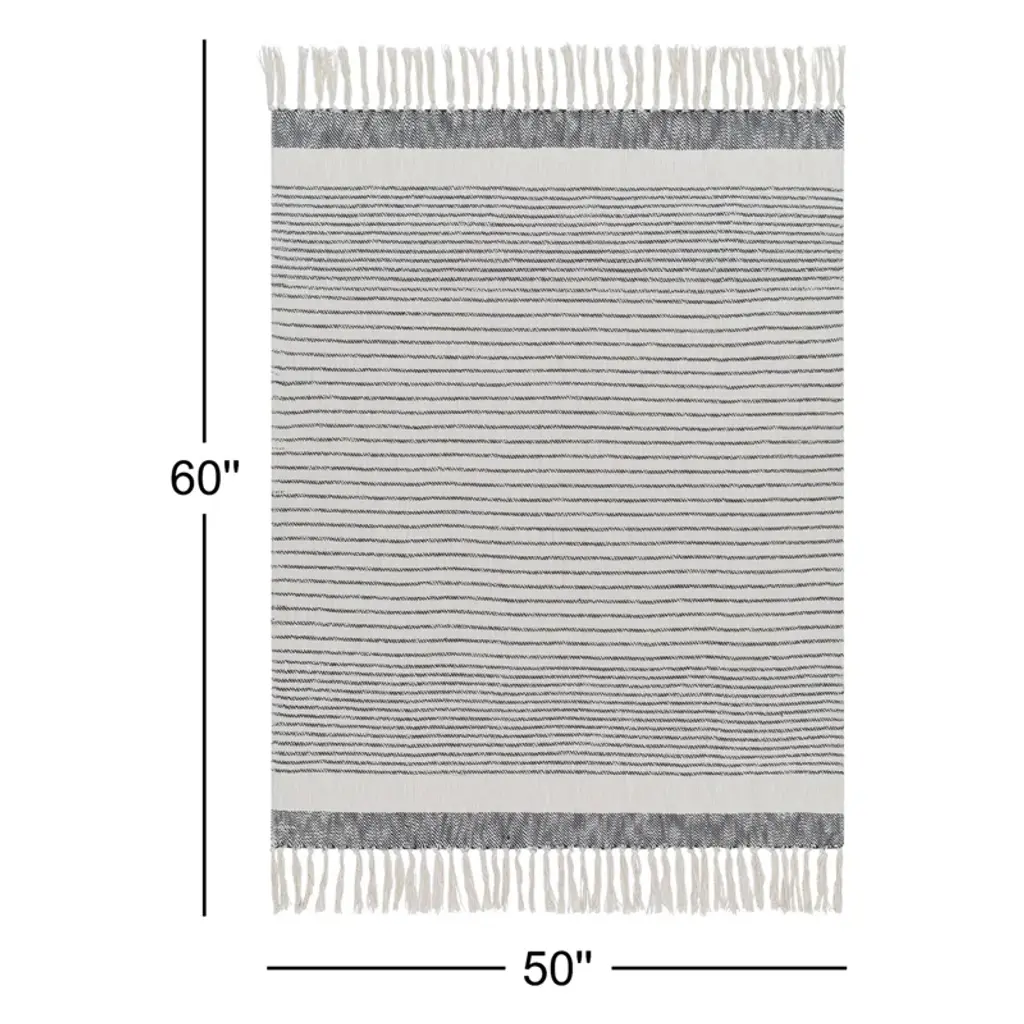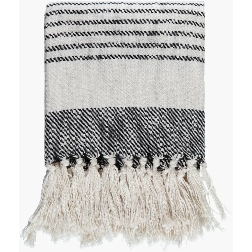Immerse yourself in the comfort of this throw, a unique and modern collaboration piece between Becki Owens x Livabliss. This Scandinavian Modern-style throw is beautifully crafted from polyester, acrylic, and cotton for an incredibly soft touch. Its striking design boasts a light beige base with black accents, making it an eye-catching addition to any space. The playful fringe at the ends adds a touch of whimsy and charm. Made in India with precision and care, this throw will keep you cozy while adding style to your home decor. To ensure its longevity, simply spot clean with mild detergent when needed.