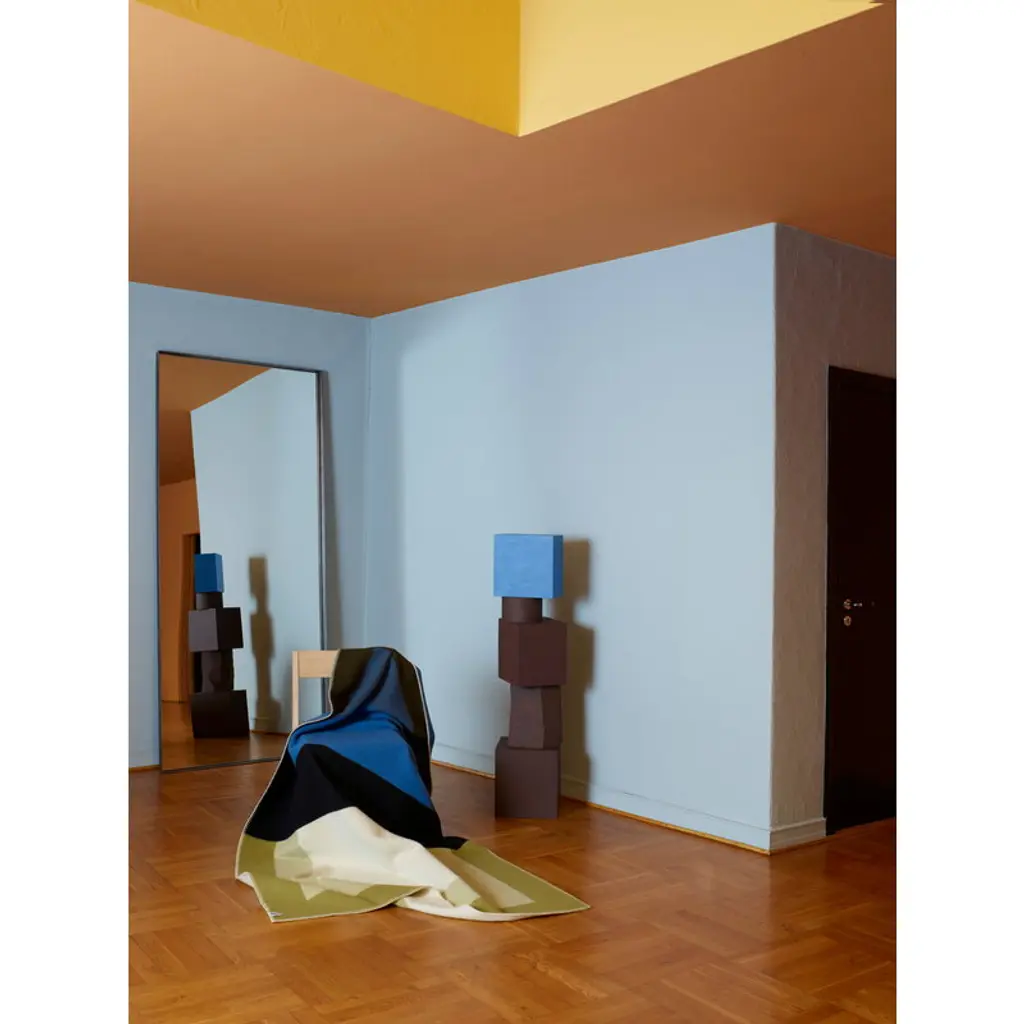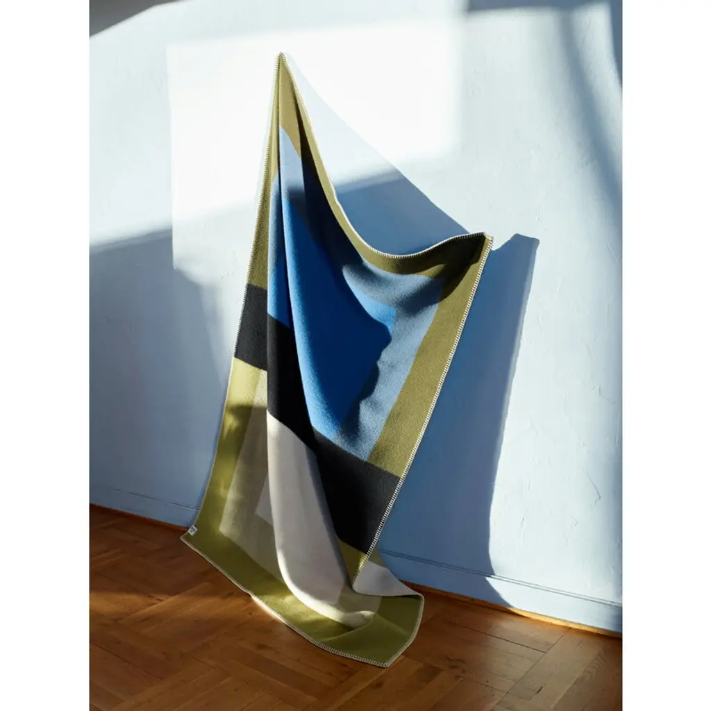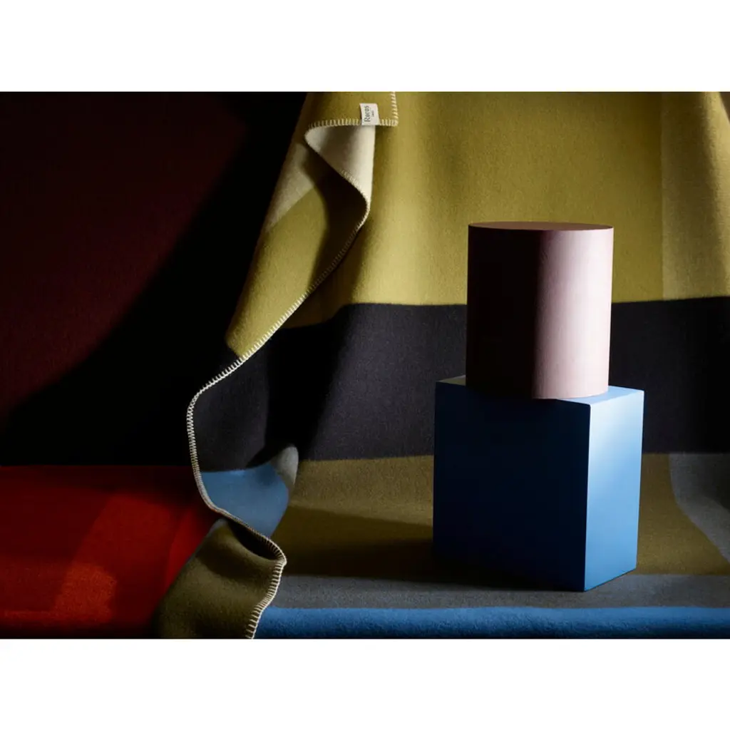 Røros Tweed's Bento throw enlivens the interior with its graphic look and radiant colors. Designed by Kristine Five Melvær, the wool throw is adorned with overlapping color blocks, accented by a bold black stripe running through the center. The pattern is reversed on the other side, offering a contrasting colourway. Finished with quilted edges, the Bento throw pairs beautifully with matching cushions from the same collection. High-quality home textiles by the Norwegian Røros Tweed are made from 100% Norwegian lambswool, shorn from sheep living free in the mountains. The manufacturing process is also kept fully in Norway to maintain high standards, which have been essential to the company's continued success since the 1940s.
