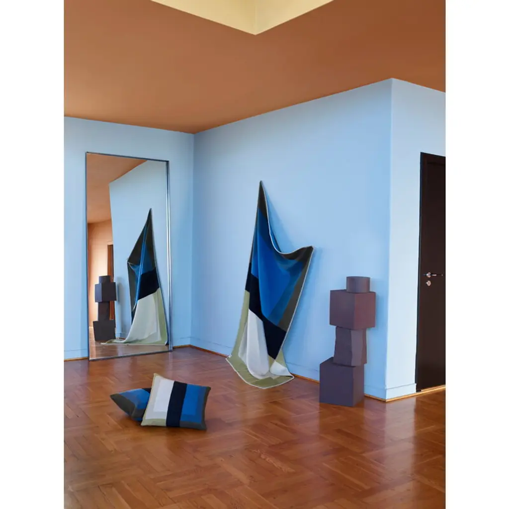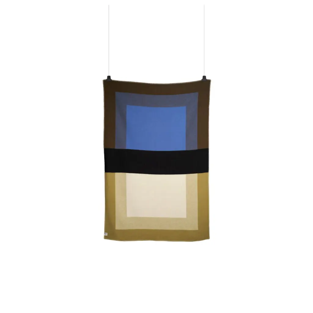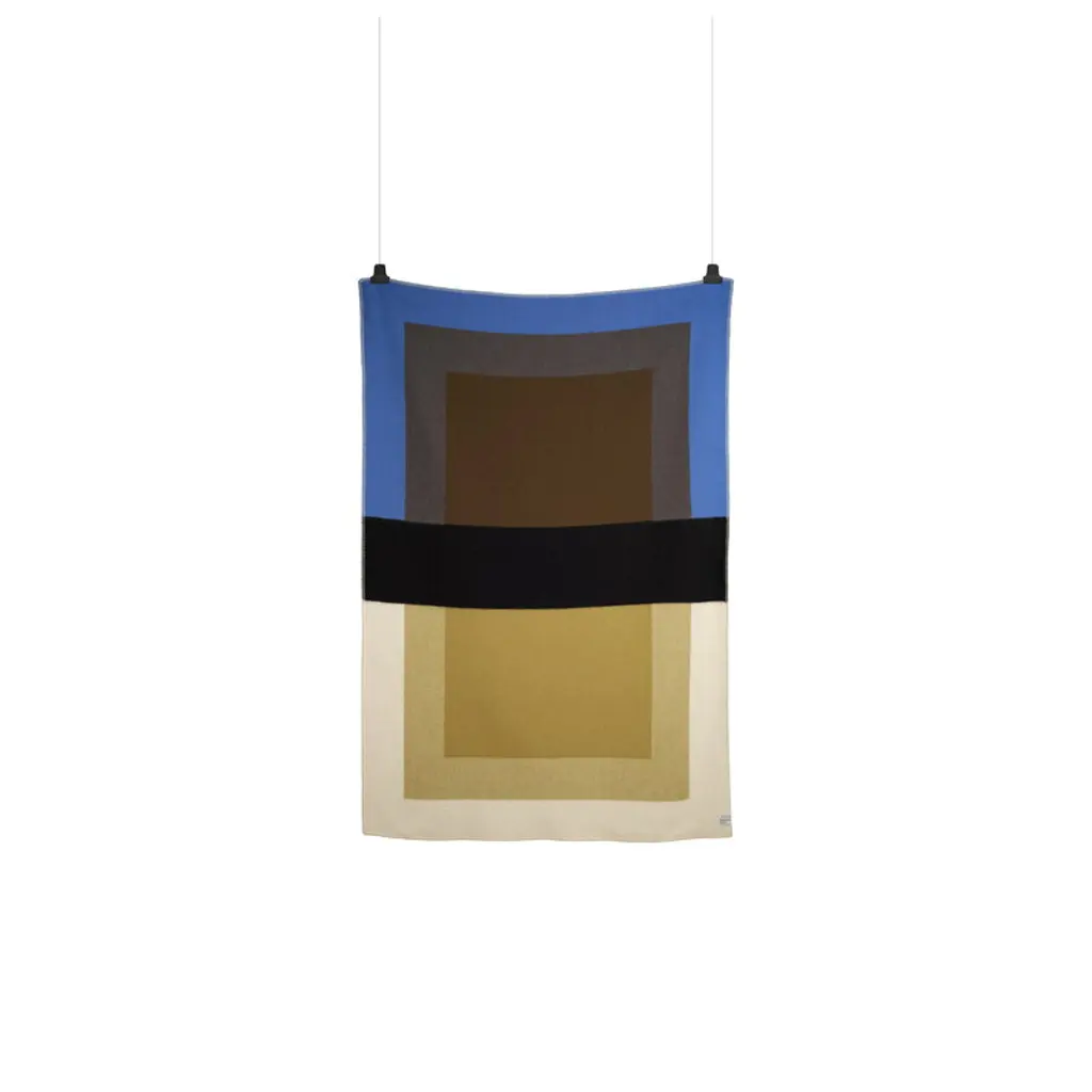 Røros Tweed's Bento throw enlivens the interior with its graphic look and radiant colors. Designed by Kristine Five Melvær, the wool throw is adorned with overlapping color blocks, accented by a bold black stripe running through the center. The pattern is reversed on the other side, offering a contrasting colourway. Finished with quilted edges, the Bento throw pairs beautifully with matching cushions from the same collection. High-quality home textiles by the Norwegian Røros Tweed are made from 100% Norwegian lambswool, shorn from sheep living free in the mountains. The manufacturing process is also kept fully in Norway to maintain high standards, which have been essential to the company's continued success since the 1940s.