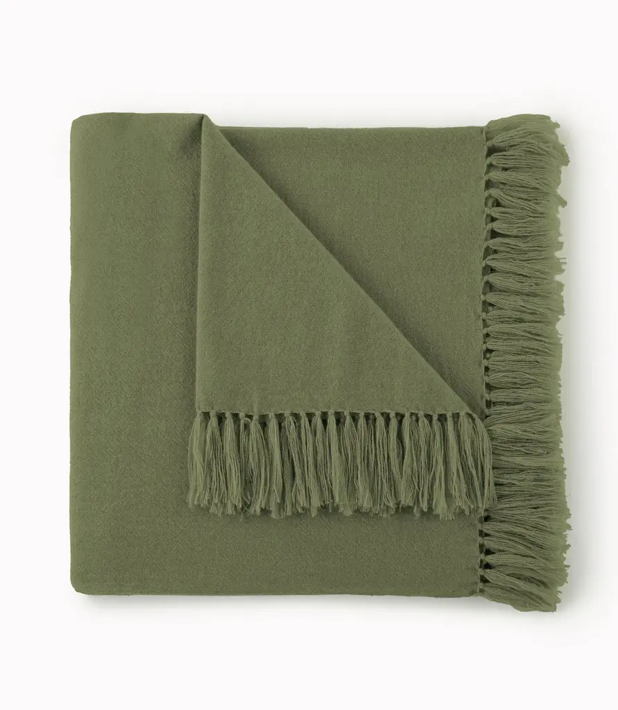 Cozy combed cotton throw in 8 beautiful colors with a soft ivory interwoven weave ending in tassels. Features