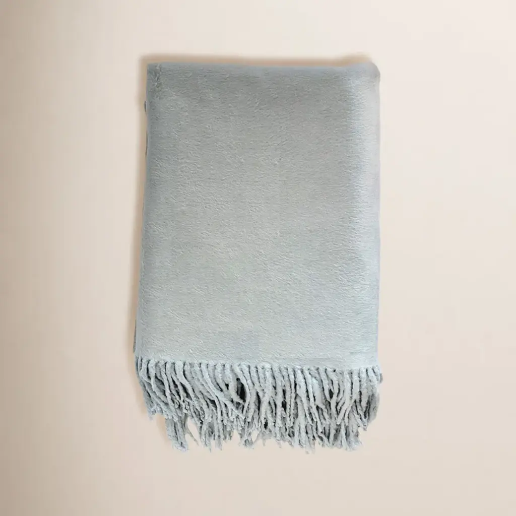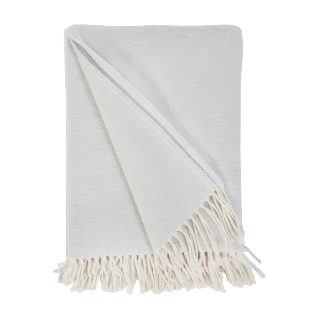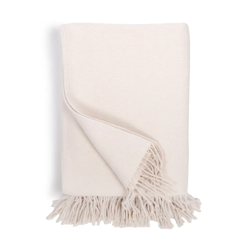 Cozy combed cotton throw in 8 beautiful colors with a soft ivory interwoven weave ending in tassels. Features