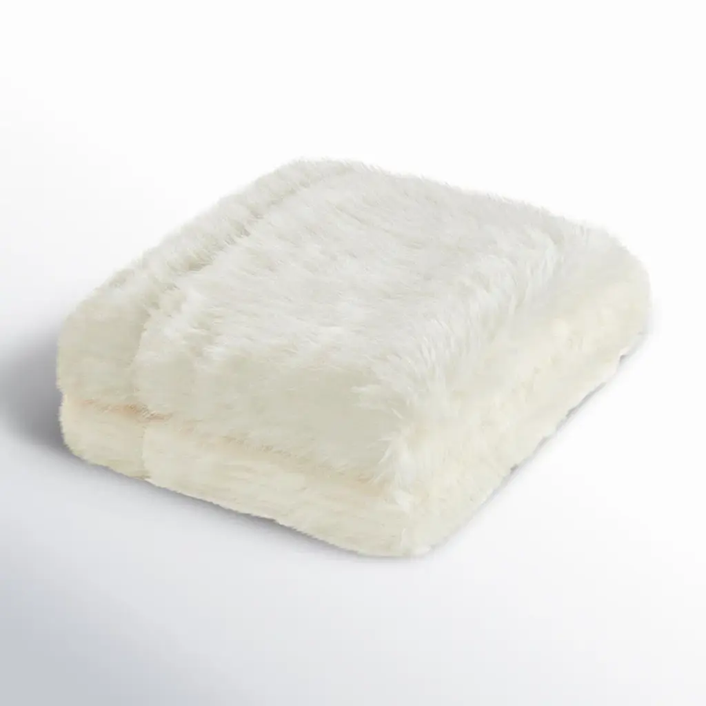This faux fur blanket is super soft and warm, made from 100% microfiber polyester. The white color makes it easy to match with your room's decor or other things you have. Plus, it adds a nice, fluffy texture to your space and makes it feel extra comfy and inviting. It's the ideal companion for those chilly winter nights, keeping you cozy whether you're lounging on your bed or curled up on the couch.