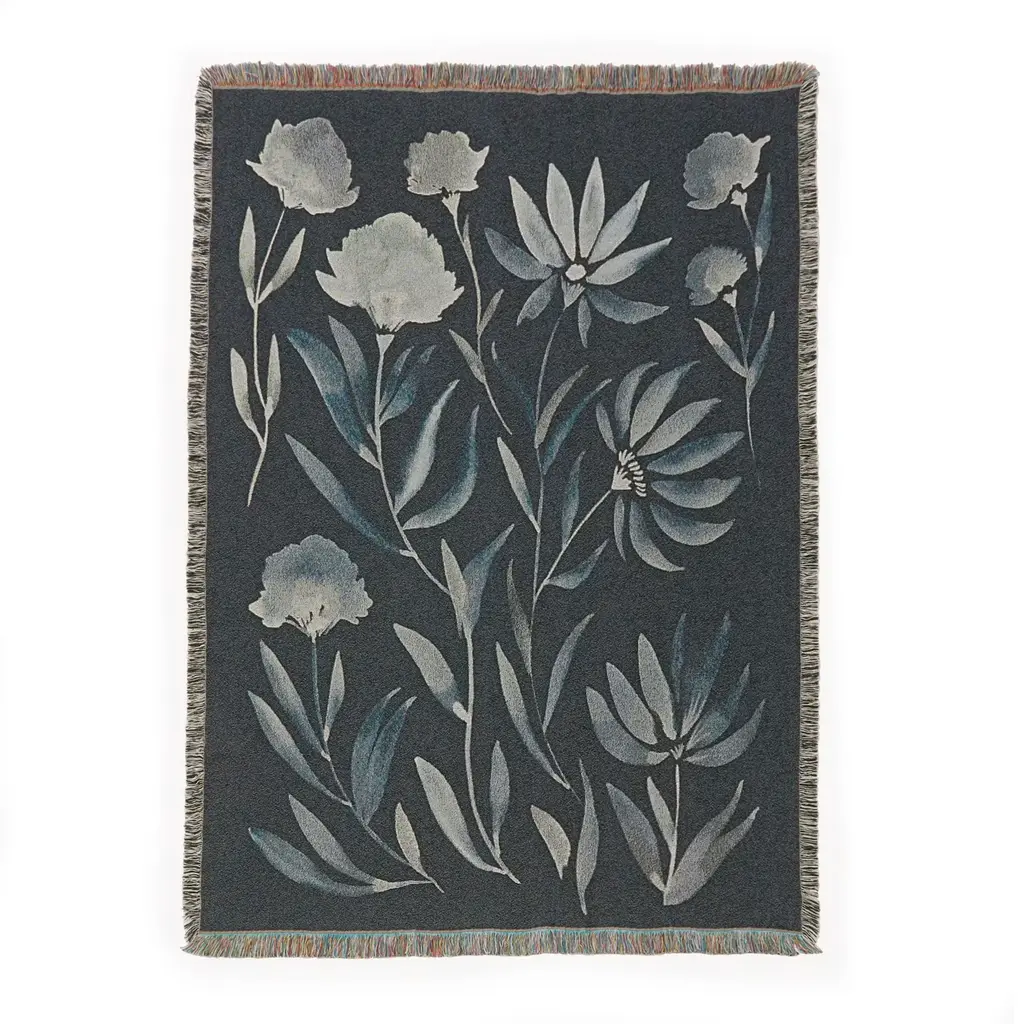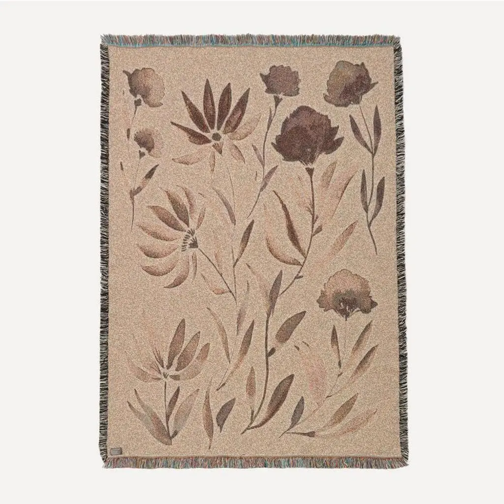 The Bloom woven throw in Dark Mint features Rosanna's signature style hand painted dark, green, floral placement print on one side and a contrasting delicate beige, pink flower print back, creating 2 throws in 1 and making this blanket reversible. Woven from 95% cotton, 70% of which is recycled, and featuring a beautiful fringe edging, this jacquard blanket is both functional and eco friendly. Perfect for your bedding, cosying up with on the sofa or as a large statement wall tapestry hanging.