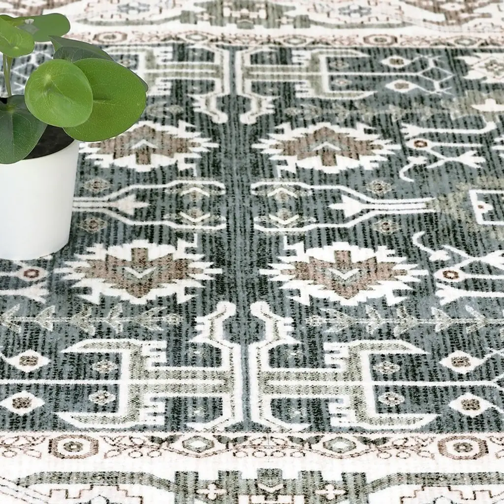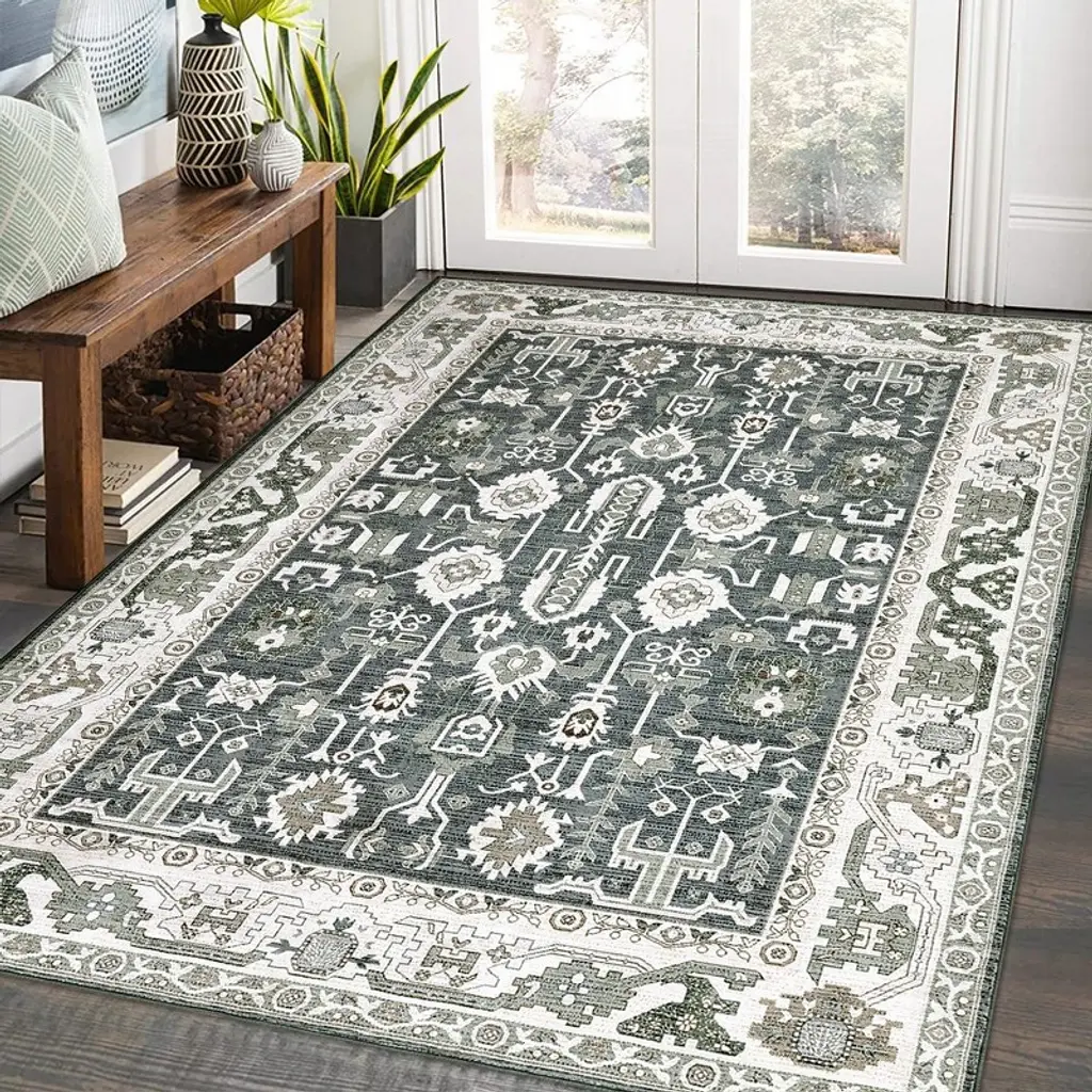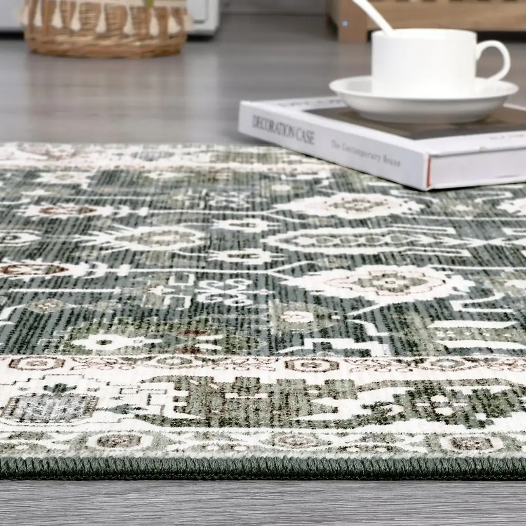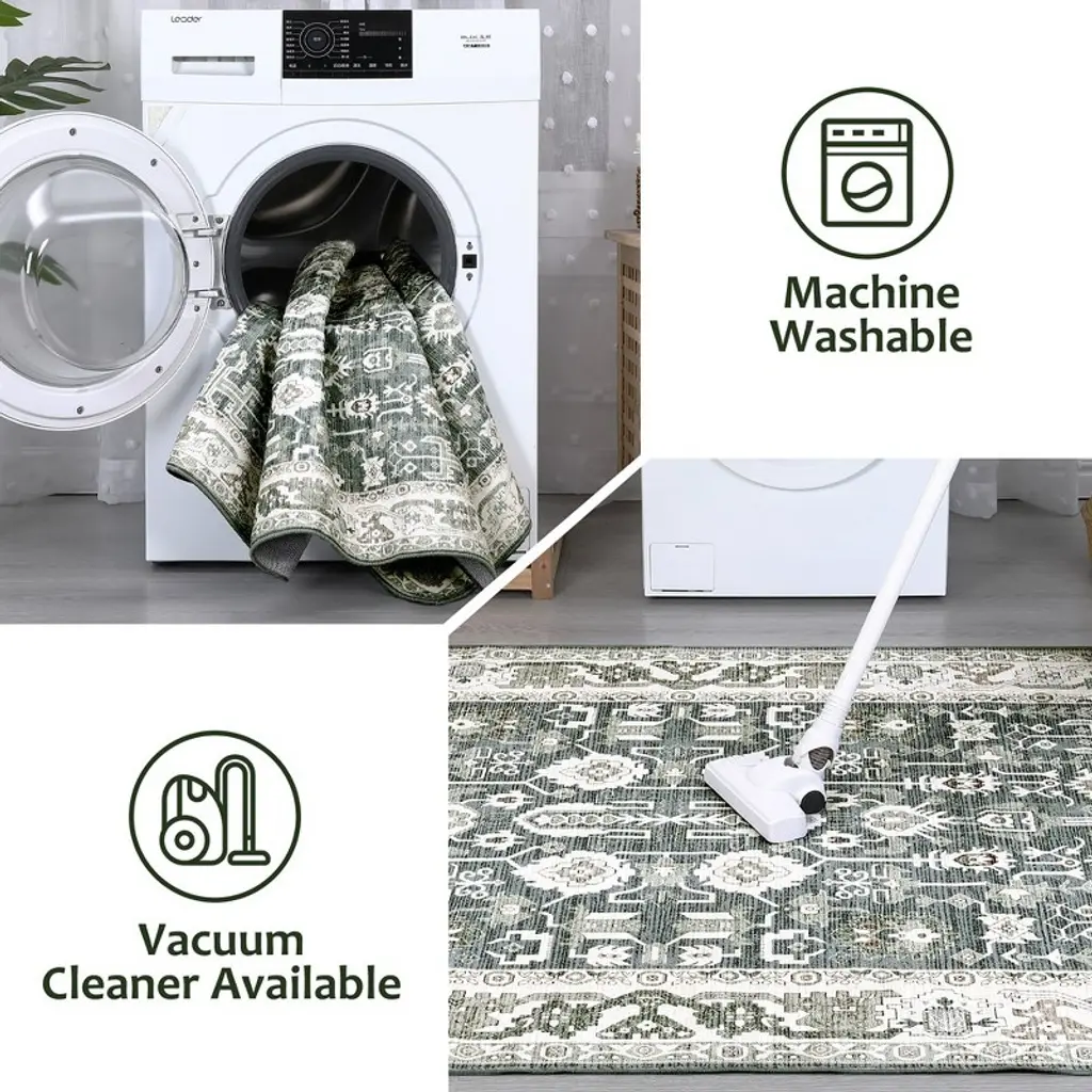 Boho Washable Area Rugs Non-slip Throw Rugs Vintage Carpet, 5' X 7' Green