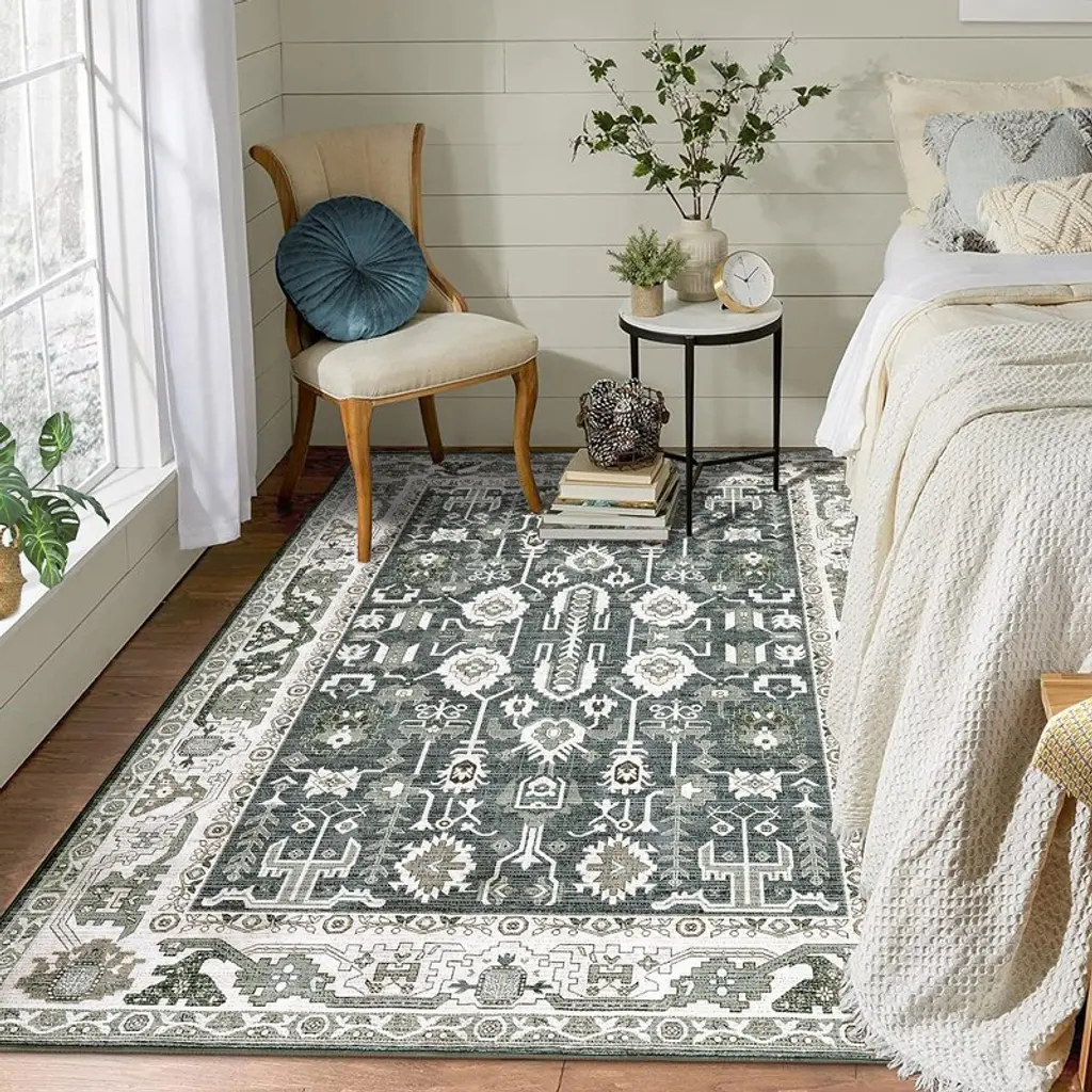 The vintage and stylish design of our rugs is beautiful and generous in appearance, making them easy to mix and match. Our chic boho Washable rugs are designed to withstand everyday use and are extremely easy to care for. The floral bohemian design beautifully enhances any room in the home, from the living room, dining room, bedroom, entryway, nursery, dorm room, study or home office.