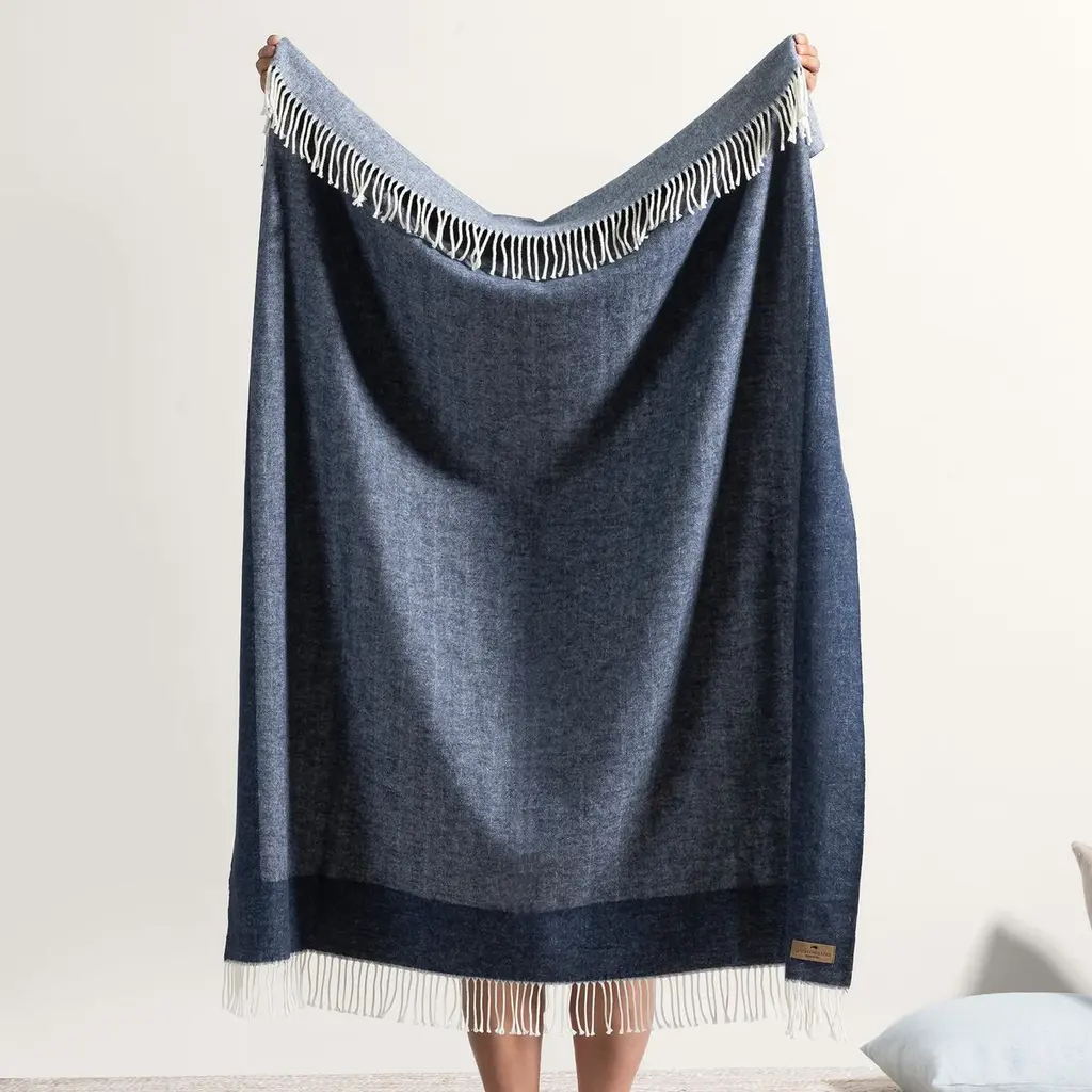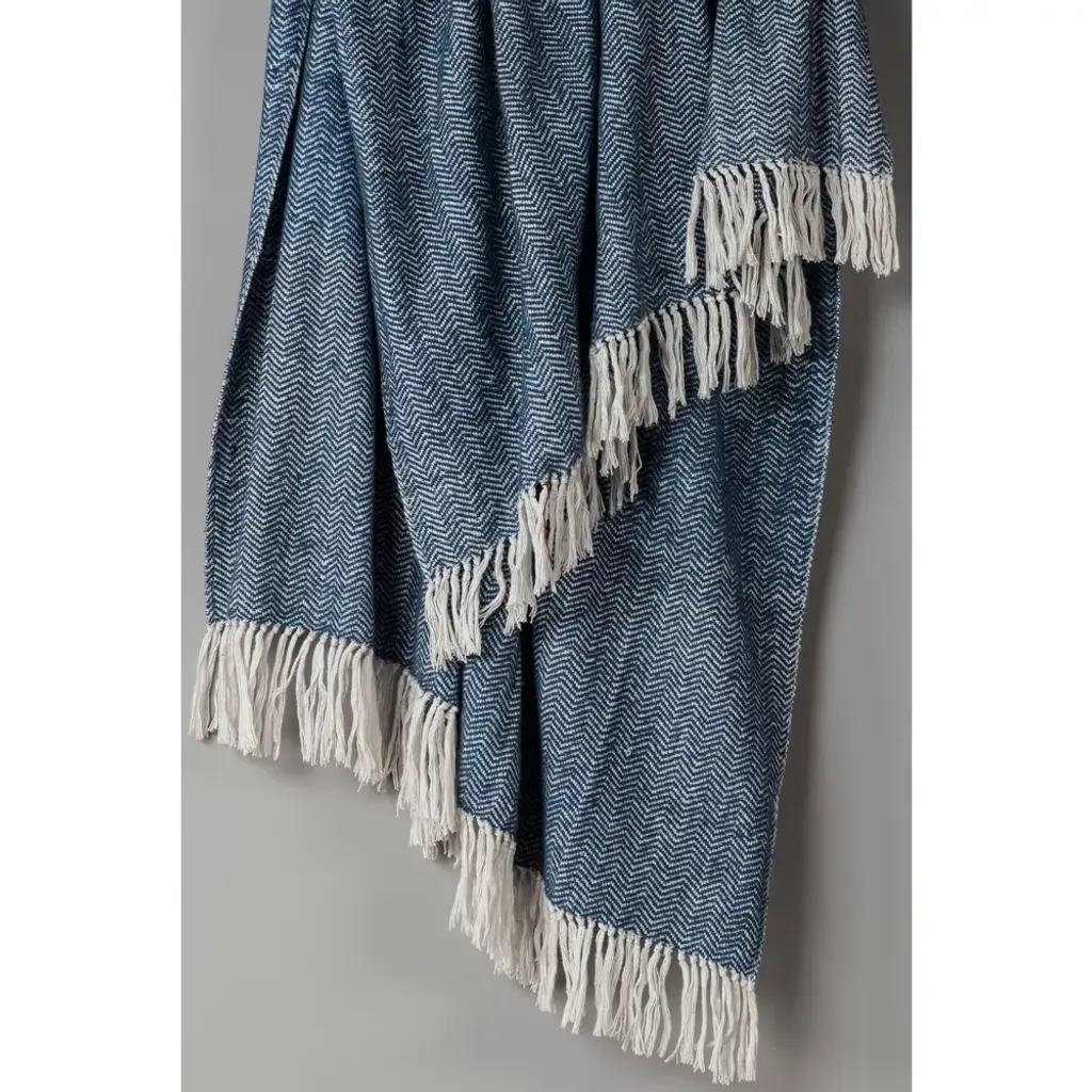 Crafted in Italy with a herringbone weave, this cashmere-soft cotton-blend throw features a light gray ground and a darker gray border, accented with lush fringe. It's ideal for draping over a sofa, folding at the foot of the bed, or tossing over your shoulders on a chilly evening or in an overly air-conditioned space.