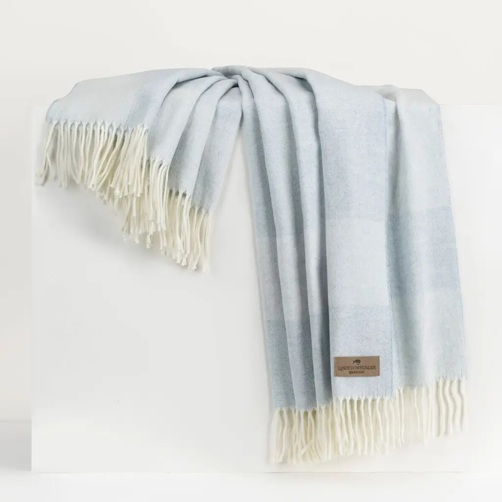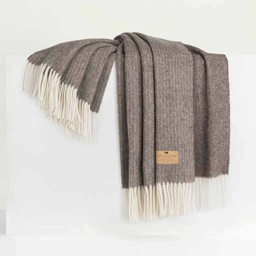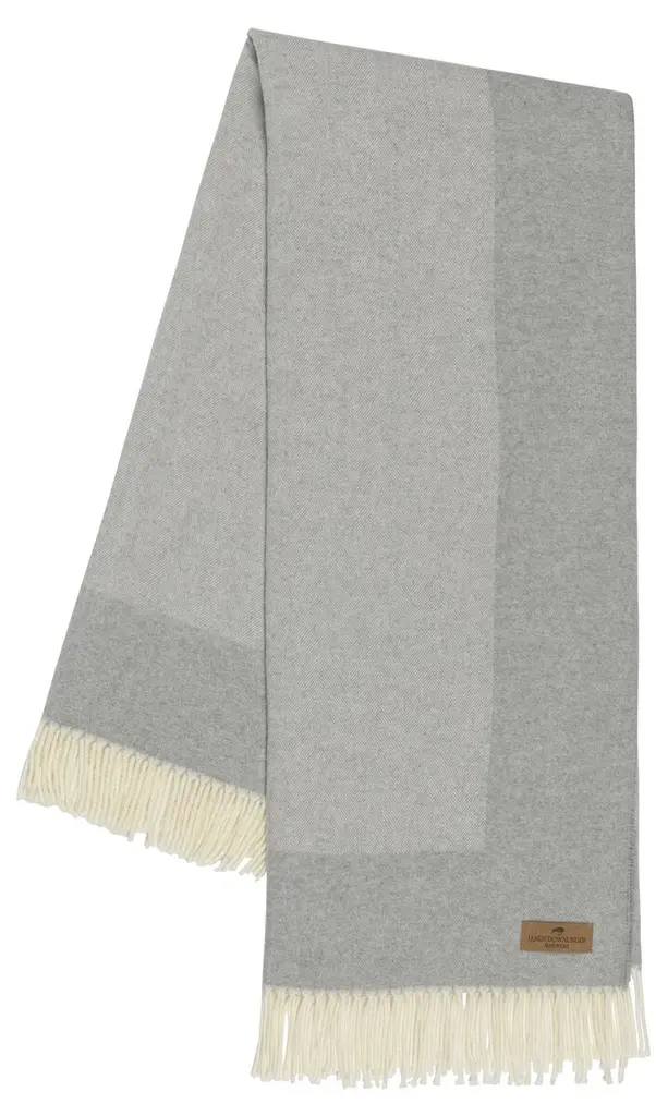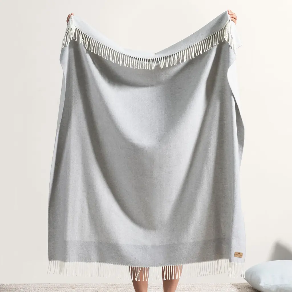 Crafted in Italy with a herringbone weave, this cashmere-soft cotton-blend throw features a light gray ground and a darker gray border, accented with lush fringe. It's ideal for draping over a sofa, folding at the foot of the bed, or tossing over your shoulders on a chilly evening or in an overly air-conditioned space.